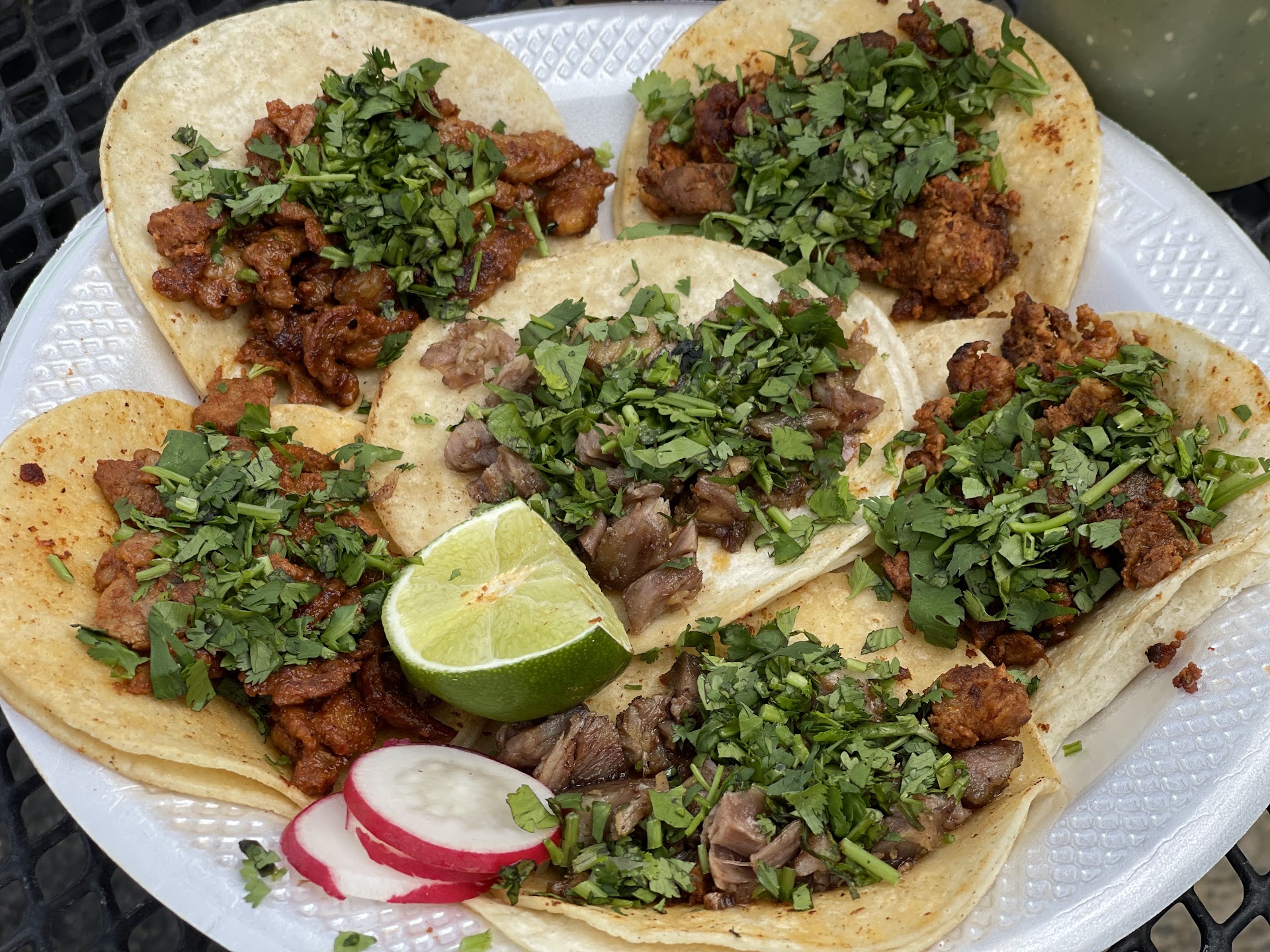Read moreDefinitely a 5 star. Probably a 9.2 out of 10. I started with 2 Adobada, 2 Carnitas and 2 Chorizo, finished those and had to go and order 2 more, Cabeza and Adobada. They're all so good. Nothing dry about them. Tortillas are good and all the carne was fantastic. Red and green salsa was fine, not amazing but very standard and complimentary to the delicious tacos. One table with an umbrella or front, parking at the shop or behind the truck. Fast and well priced ($2.50 a piece). The only downside is it's right off Garrity which makes the street noise a bit much to really Talk and conduct business. But for a quick to-go meal, this...