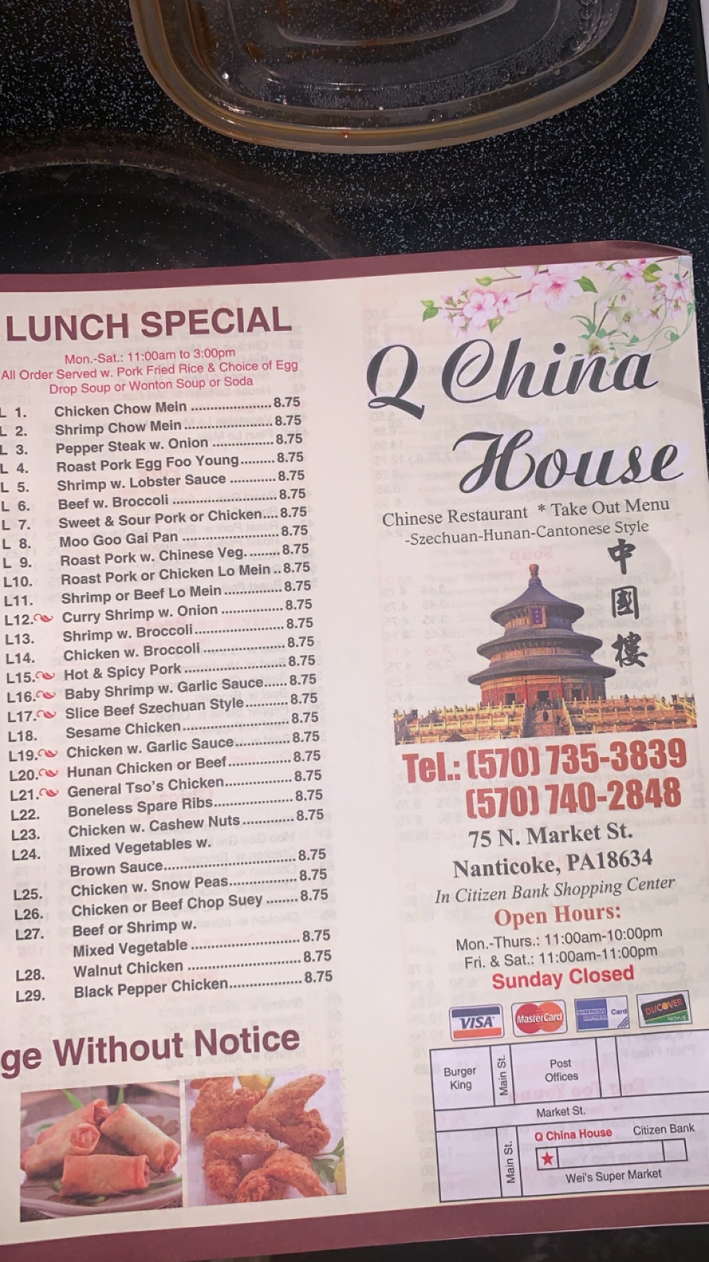 I ordered shrimp and broccoli combo as well as a vegetable egg roll as I DO NOT eat meat. When I got home w the order it was CHICKEN and broccoli. I called the restaurant, upset, and was met with the worker telling me I was wrong but offering to exchange the order. Now, idk how other people feel but I didn't want to have to go back to the restaurant, hoping no one spit in my food bc I complained about the order being wrong to get a new dish. Especially when the person I complained to told me I ordered chicken. I haven't eaten meat in over 10 years, I even specifically asked for a veggie egg roll. I won't order from any Chinese restaurant in NANTICOKE anymore as both restaurants have done the SAME thing. Btw .. shrimp sounds nothing like chicken. At least in English it doesn't. I alsonwant to add that against my better judgement I did go back to exchange my order. The shrimp and broccoli I ordered had 4 pieces of shrimp in it. I'm not sure what the "normal" amount is but I had more rice than anything else, even the broccoli was sparse. If you want GOOD Chinese food don't order here or any place in Nanticoke. You're better off going into Wilkes Barre or Kingston if you want your order accurate and...