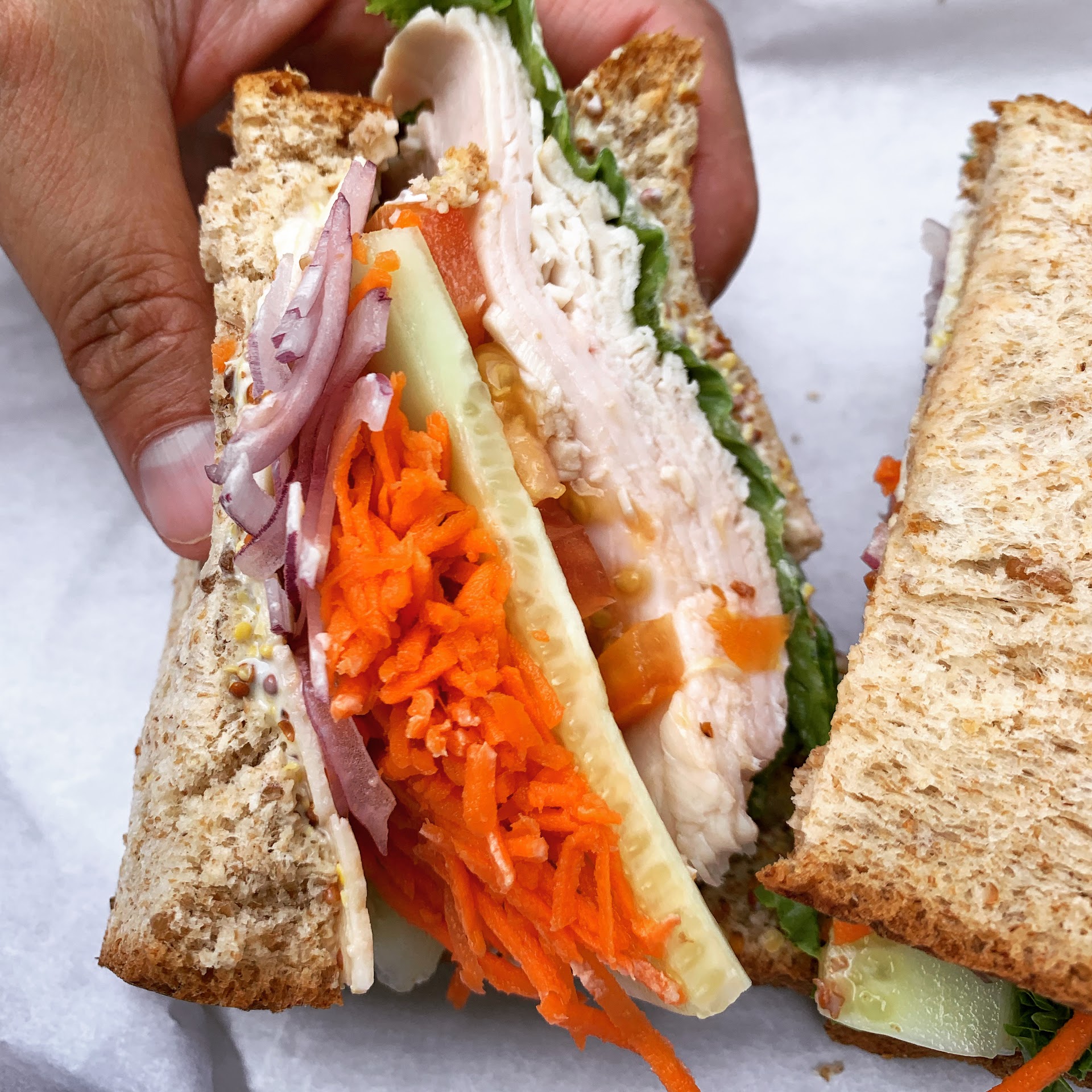 Stopped in to pick up three sandwiches during a bike ride to Siasconset. Was a really long line just after noon on a Friday, but the line moved steadily and we got our sandwiches without too long of a wait. Not much room to move around when it is peak lunch time. There are a few tables on the deck with umbrellas, but we elected to walk the short distance to the beach and eat our sandwiches there. The unsweetened tea didn’t really have a great flavor and the lemonade was quite tart. The sandwiches were fantastic - large with fresh whole wheat bread, lots of fillings, and fresh toppings. We tried the ham & cheese, smoked turkey and roast beef – all were very good. The best part was the house sauce – which is a mayo, mustard and horseradish mix that was very tasty. All...