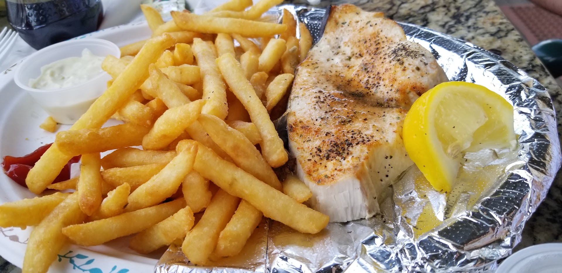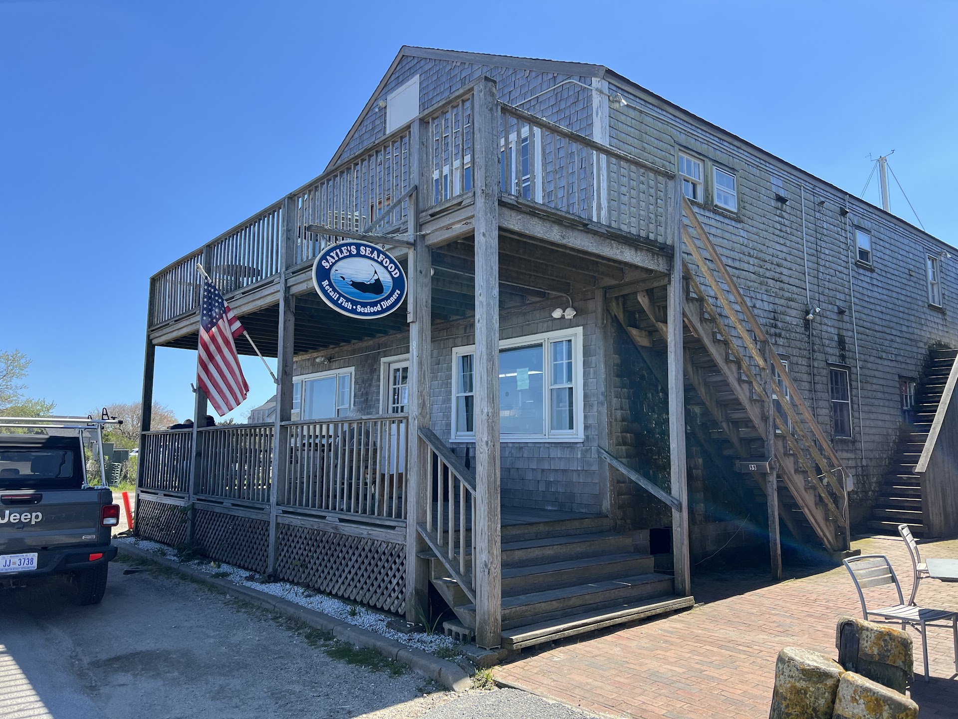 This is one of those places that is absolutely not high end, fancy, or anything like that. Don't get me wrong....it's by no means a dump. It is a really comfortable place that serves the absolute freshest seafood imaginable. It is pretty much the best fish market you could imagine, they also happen to sell some cooked seafood that you can takeout, or eat on the porch like I did. It's an old house style building, across from the water with a big front porch with granite top tables and plastic stackable lawn chairs. It's kind of like visiting someone's Grandma's house. IMMACULATE food handling, with delicious food like my Grandma would make ... better than any restaurant....only the best !!! No pretentious furnishings or trappings that end up inflating the bill....nope....nothing pretentious about this place. They do what they do, and they do it right. This is without doubt, the very best fried seafood on the island.....I can't believe I could get a small side order of whole belly fried clams for just 10. I don't know any place where you can buy an amount of fresh, sweet, whole clams for ten dollars. I really wanted their swordfish .... JUST WAIT until I tell you about that...but really, how often have you been vacillating over what to pick for dinner?This place has side orders ....but I mean side orders that are inexpensive enough, in two sizes, and the small size is small enough, that you aren't talking about the size and price of a whole other meal (just without sides.) I couldn't decide..I was dying for clams, and it's not easy to find good whole clams...but I also heard about their swordfish. By the way the swordfish dinner comes in two sizes...large and huge. They get it. They really get it. So, I ordered a small side of whole belly clams and a swordfish dinner. It was the best thing I could have done....oh my...back to the swordfish....they actually...get this... they actually CUT THE SWORDFISH STEAK from the fresh swordfish. Oh my ....oh my... really. It was a far cry from the well-intentioned restaurants, who sell good food, but feed us frozen swordfish steaks. I know. I eat them and they are good. Fresh is another level....but this .... cutting the hunk of swordfish steak from the massive fish ...that's just over the top...insanely good. My words fail me. The clams melted in my mouth. The swordfish was memorable. It came with chowder that was good and french fries and Cole slaw.I will go back to the island, with Sayle's as a definite stop. Sorry about the clam photo....I dove into them, and by the time I came to my senses long enough to stop eating, there were only a couple left, but I took a photo anyway. A fellow at the next table (there's no table service...you pay cash at the counter, and they call your name when it's ready.) The fellow had a New England Lobster Bake...oh my...steamed 1 1/4 lb lobster, steamed mussels, steamed clams, boiled red potatoes, corn on the cob with butter and broth...it...