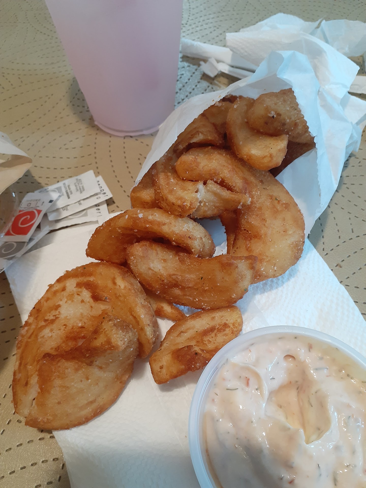 The fries were crispy, if ordinary. They were crinkle cut from the freezer.