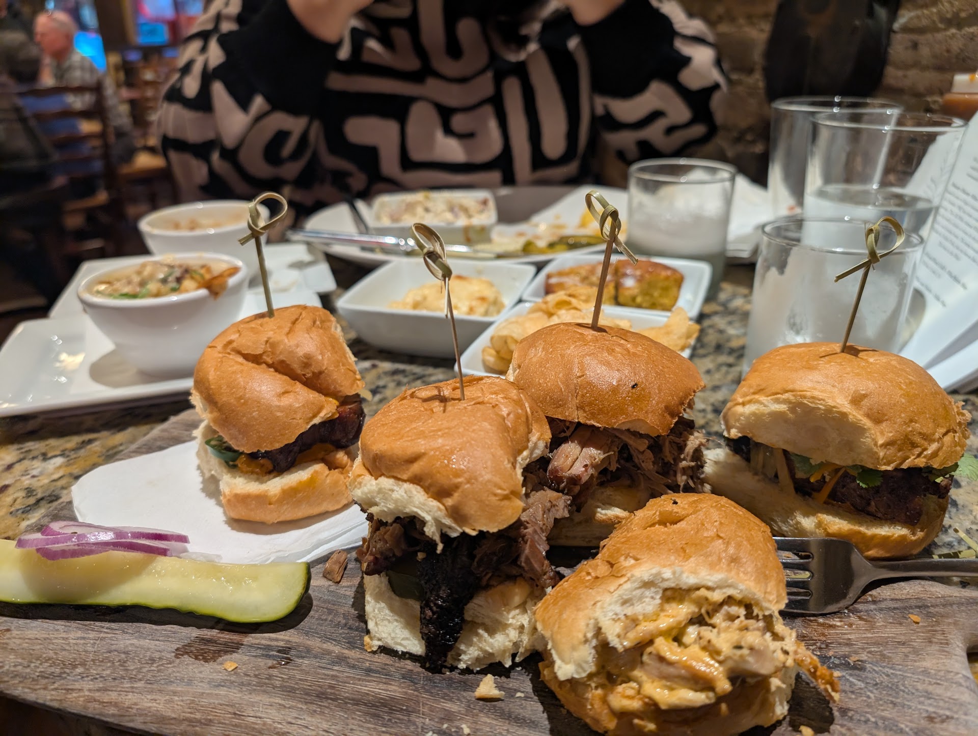 Original Review: The mac and cheese, though small in portion, is big in flavor! It was delicious and the highlight of our meal! We had the meat platter also (pulled pork, tri tip, and ribs). The meat was tender and the sauce provided at the table was pretty decent. The chips and slaw were definitely a let down. They tasted mediocre, as if they came from a bag. If we could have had mac instead on the platter, that would have been a win! I would eat their ribs and pulled pork again - and of course the macaroni. The tri tip wasn't bad, but it was a bit well done for my taste. That's a personal preference though. I also would have loved the option for some rolls with the pork. I think I expected more for the price point, but overall the meal and service were good. The tables are a bit small - likely because of space limitations. We agreed that the corner edges of a square table would have been a big improvement for us, but we made do. The air conditioning was great on this hot day! We would go again on a warm day when we need some AC with our BBQ. I would just make sure to wear comfortable shoes, as parking is hard to find. We had to walk a few...