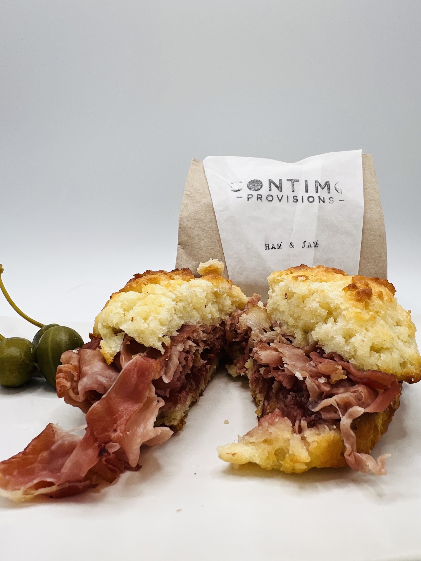 I had some concern over the wording that modifications to their menu would be politely refused as there has never been a time when I enjoyed dijonaise on a breakfast (or any other sandwich, for that matter). This gentleman explained I should give their version a try and should it not be to my liking, no worries, they'd make one just the way I want. With confidence like that, it was game on. So, color me convinced. I now need to rethink some of my culinary skips the past few years. So, we roll inside and encounter, Bryan the owner, behind the counter. He is the kind of owner who develops a cult-like devotion. He is funny, affable, charming, endearing and interested and interesting all in one talented bundle. The kind of owner you want to sit and have a beer or two with and hear his story. All this before the food has arrived, which seemed very fast considering it was made fresh when we ordered. I has the hot ham and cheese with the dijonaise and I should have ordered one to go. Hubs had the sausage breakfast biscuit and 100 miles later he is also regretting not having ordered a second. My niece, who had never had pimento cheese prior and normally isn't a huge fan of ham polished off her ham and cheese biscuit without hesitation.