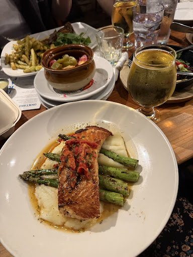 The spot and seating - Haven't been here in a long while so I was pleasantly surprised when I walked in because they've expanded, massively. They have a whole other side, and the layout works! This was our dinner spot after spending some time w/ the managers and bosses from Admin. Appreciation Day. We were seated family style, down the middle of the pub. Our server was the bomb, very attentive and always came with help to bring our drank, apps and eventually dinners to us. Many, many tables to choose from, seating anywhere from 2 to 6, comfortably, without having to move tables around. There's bar seating too! Tons and tons of tvs, obviously with sports on. That day there was baseball, hockey and of course, basketball playing all around me.