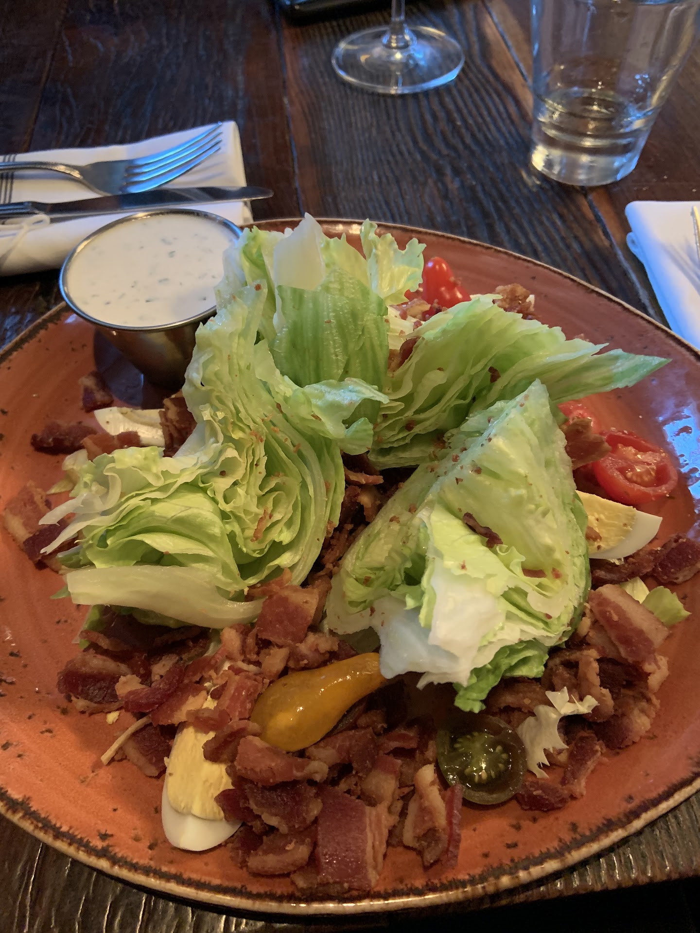 The Wedge Salad is big enough to share. Crispy, fresh, and tasty!