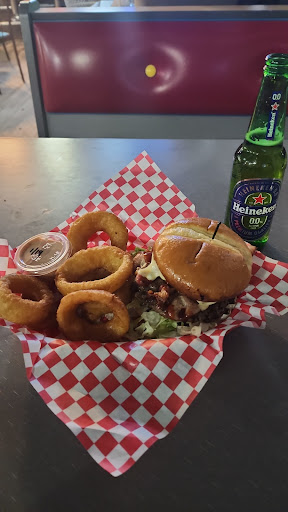 It's a Wednesday night and I'm driving between Seattle and Portland. I used Google maps to find a unique place to get a hamburger along the way. Frosty's popped up on the list as I stopped to use the restroom in Centralia. Looking at the photos of the food and reading the reviews it looked pretty good. It's pretty close to the freeway, not at the exit but definitely worth the few minutes of drive into the quaint town of Napavine. When I got there around 9:00 in the evening there were about 20 people in the bar. This is definitely a local spot. You order from the bar and the staff brings it to your table. I sat in a comfortable padded banquette. I ordered the western burger which was a burger with bacon, Swiss cheese, barbecue sauce, an onion ring, on a brioche bun.