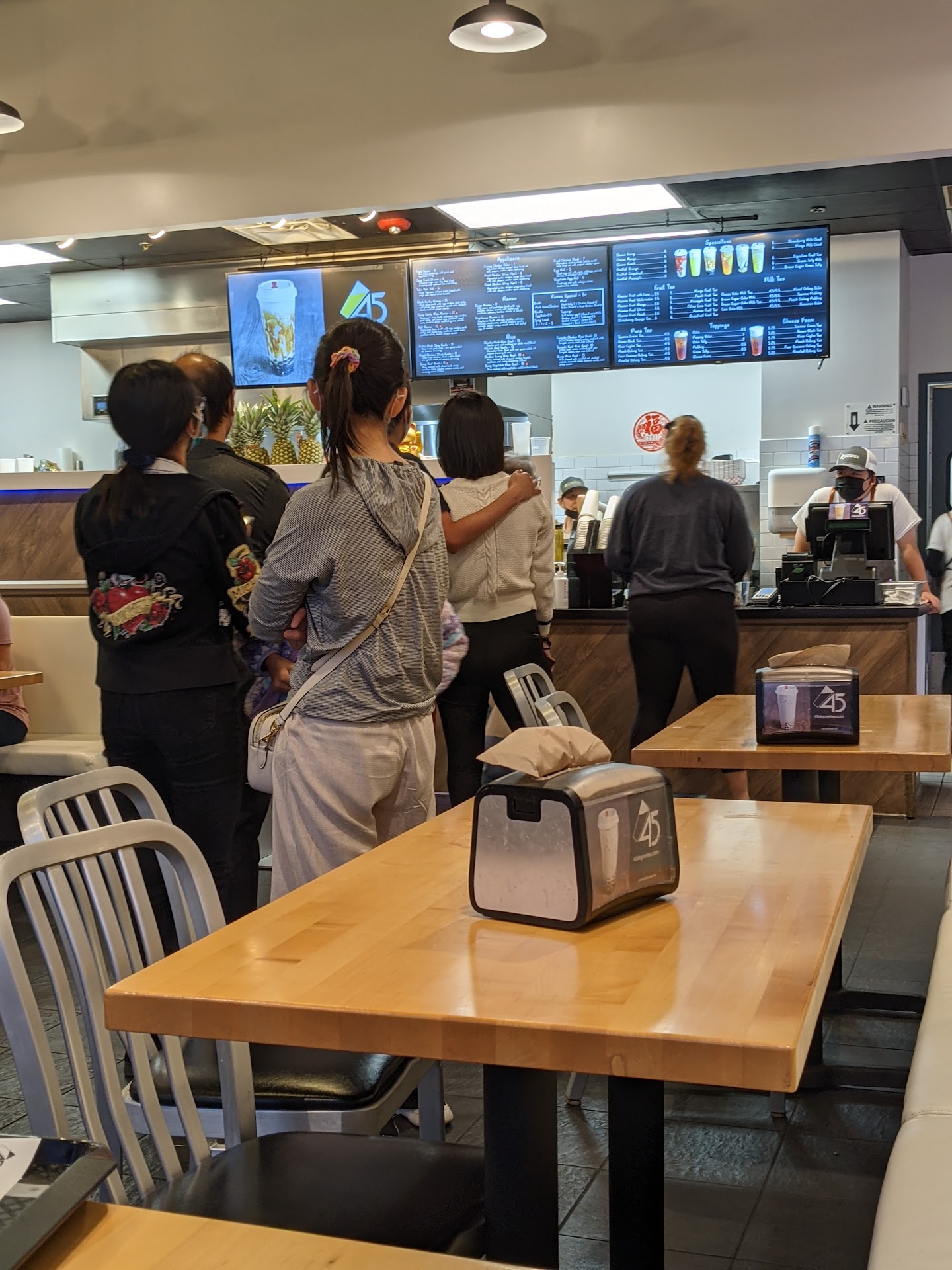 I probably wouldn't come back for the bubble tea, the competition is huge in the area with more options and flavors (Vannie's, Ma Tea House, Pisces). The boba (kudos for having it in the first place considering the shortage lately) was on the soft side and not sweet enough, I think. The milk tea tasted good but the flavor was very mild.