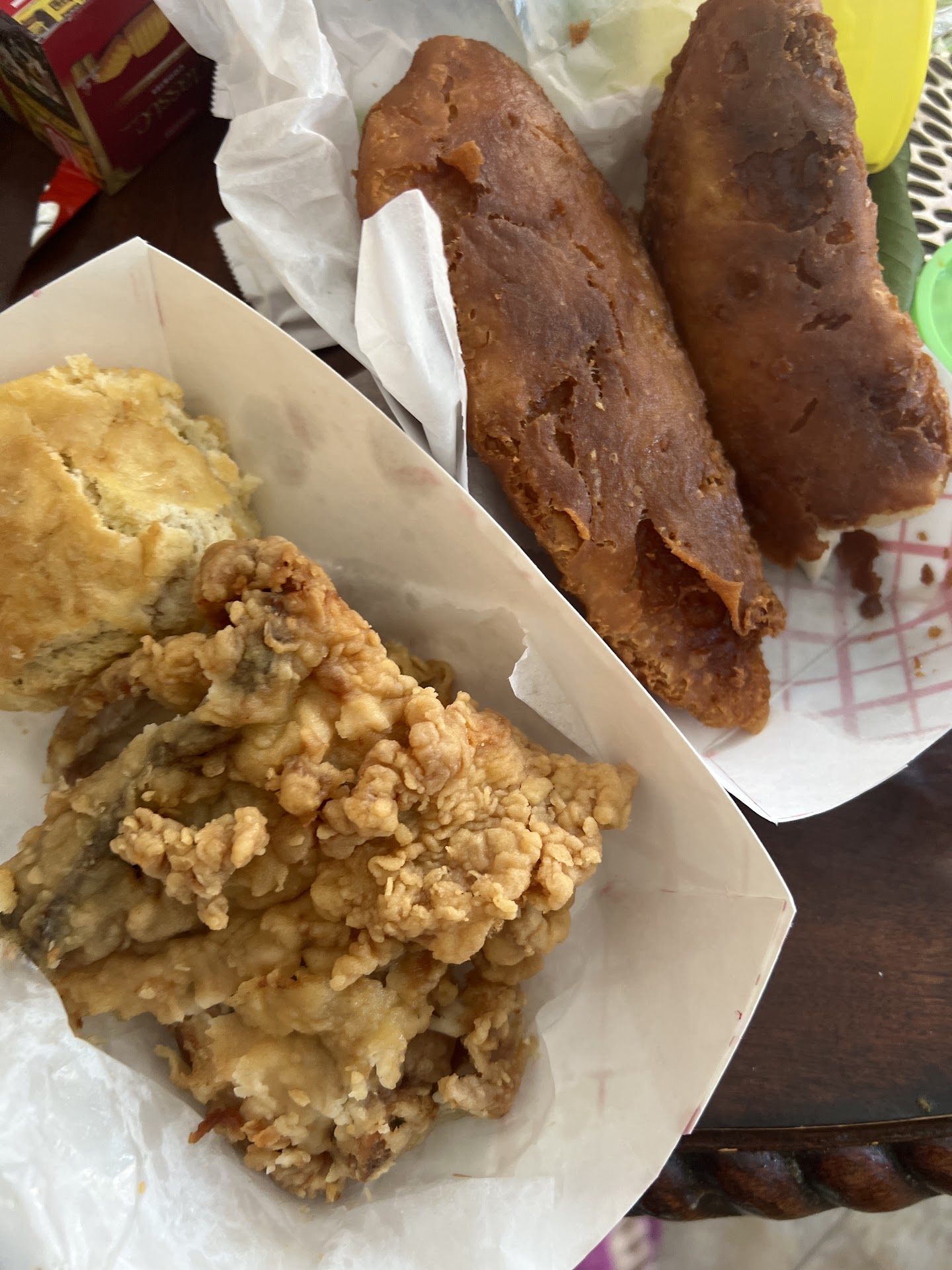 Read moreI have never actually had Brown’s chicken until last night. It came highly recommended to me by a friend, so I figured I would try it and pick some up on my way to work. I ordered a chicken bowl, which was supposed to have mashed potatoes, gravy, corn, and fried chicken pieces. They forgot the gravy, so the entire thing was very bland/dry. The pieces of chicken in it were absolutely disgusting! Hard/chewy… I didn’t even eat the meat. I just picked at the potatoes. I also ordered a biscuit and an order of 4 corn fritters. The corn fritters were awful! They tasted like they had sat out for days. SO dry and had no flavor or any corn in it at all. I threw them away. The best thing about the whole meal was the biscuit. It was super buttery and delicious. I guess it’s my fault for not just ordering a meal with bone in chicken and sides for my first experience there. But, needless to say, I don’t have any intentions...