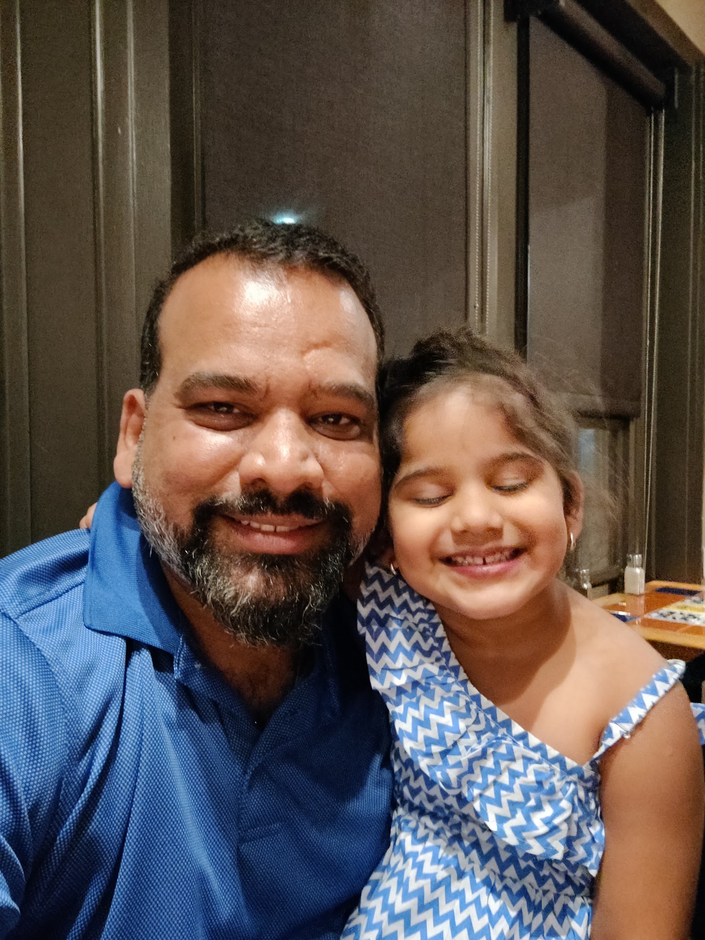 We stopped by the hostess station on our way out to let them know that we were leaving. There was a large gentleman with an unkempt appearance in a faded shirt leaning on the hostess station talking to a young lady.