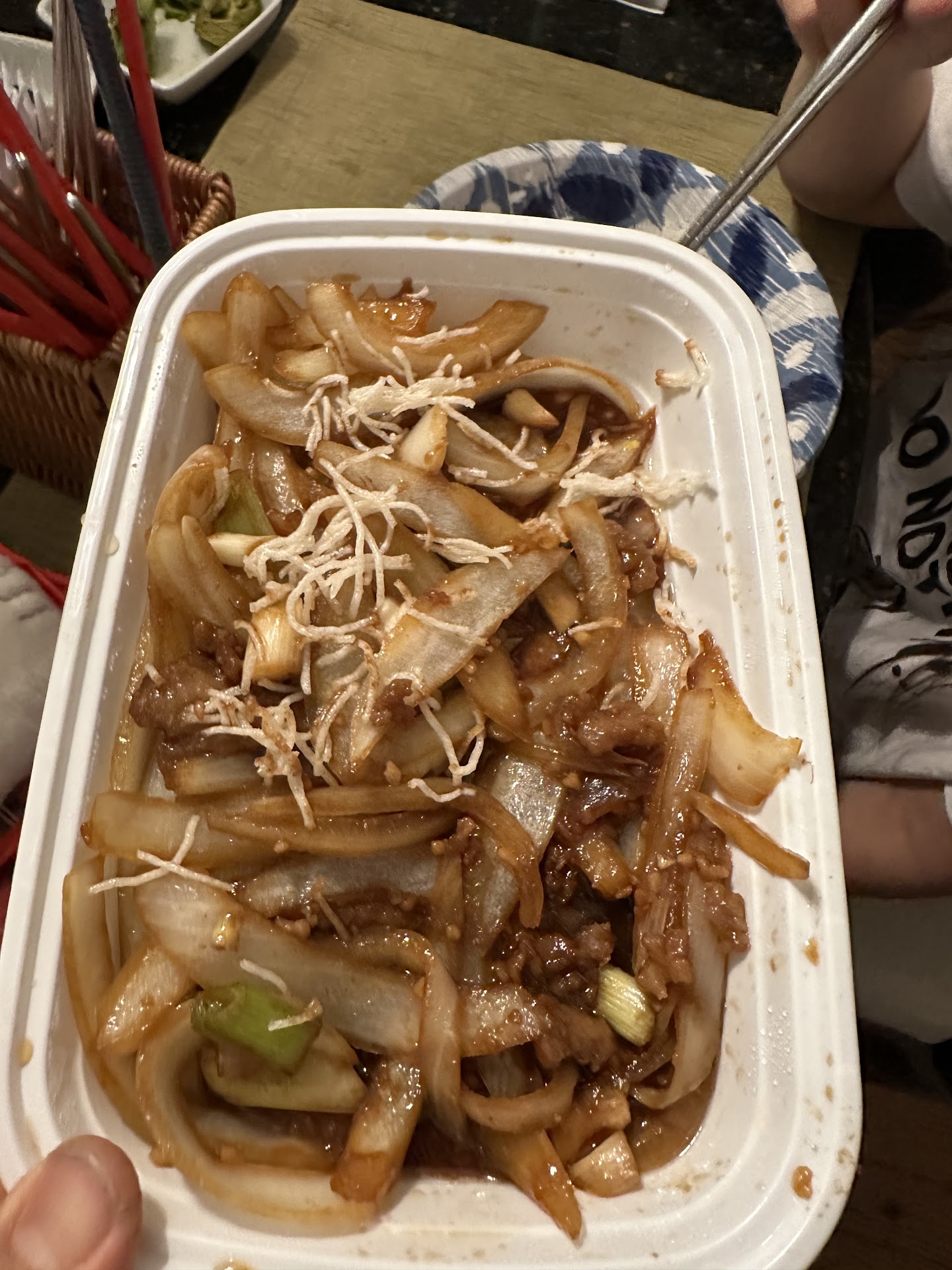 I ordered the Salt and Pepper Chicken (which doesn't appear to contain green onion, so there goes my hypothesis) and while eating leftovers this afternoon I once again bit down on a rock!