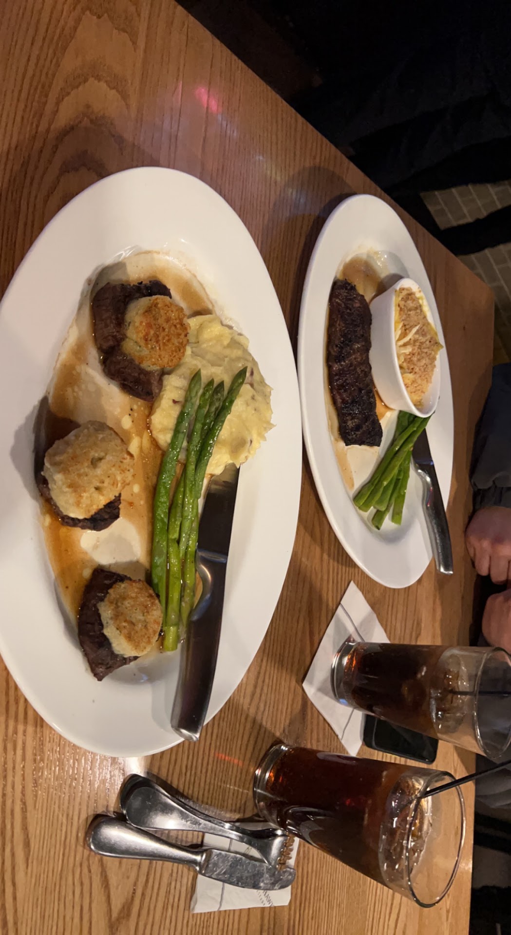 Once our server saw that we were completing our dinner, she provided us with the check (again we felt rush out the door) and due to her very rude ways with us, and with all her tables in general, we were close enough to see us. She was putting in orders how she was throwing down the plates by the windowsill, breathing heavily making noises she was extremely annoyed just to be there, and once she provide us with a check, we gave her a tip of five dollars. We thought that that was appropriate for the really minuscule service we received as such a high, end restaurant from someone who you can clearly see cannot handle tables, people and she does not have the disipline it takes to serve (coming from a former server, ME!) I NEVER treated my tables nor my clients the way we were treated tonight. Not sure if its because we are LGTBQ and it was my wife and myself but still she was RUDE.