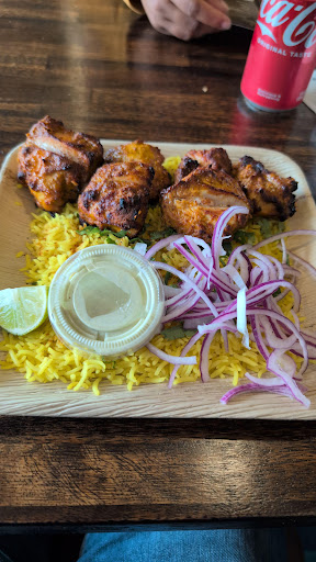 Read moreThis was deliciously spicy! We came for a late lunch with a friend who got a 🌶️Chatpata Anda Sandwich (no picture sorry) which is boiled eggs with veggies and sriracha and she said it was very good. We ordered 🌶️Raja Da Chicken Kabob with Rice and 🌶️Malvani Chicken with Roti. This. Was. So. Good! The food came out very fast and the quality is amazing. It was so hot. The employees were very kind. They warn you before you pick something spicy, I can handle it but to others who don't like the spicy look out for those little peppers on the menu. This was delicious. We got a couple of mango lassi on our way out. Refreshing and a beautiful bright color from the mango. The inside was very clean and warm and cozy with very comfortable seating. They have a large screen that plays music videos....