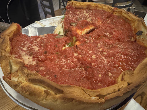 Read moreFood- Awful awful experience. We came in today and ordered a veggie deep dish and a salad. I specifically asked it for the pizza to be well done. About 40 minutes after we placed our order, our waitress brought out a half cooked pizza. It literally was leaking water from the veggies. It was so disgusting and it wasn't even warm. We sent it back to have it cooked more which took almost a half hour. It was OK once it came back. We had taken bites out of 2 of the slices which they also recooked (kind of gross).