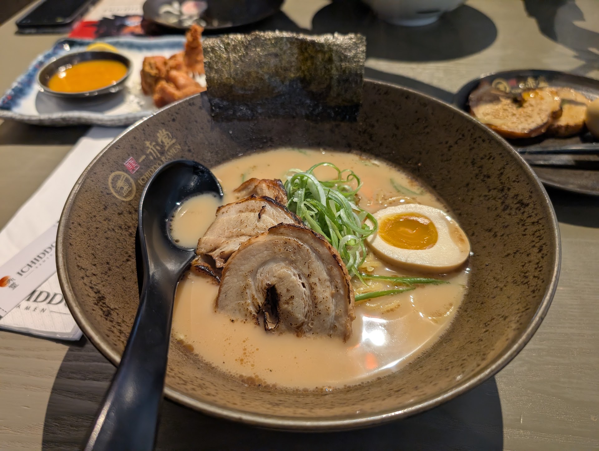 I ordered the spicy miso ramen. The broth was rly pork forward but not milky like a regular tonkotsu broth. It’s missing a little salt, maybe more tare? Idk it didn’t taste like miso at all because the pork taste was to strong. The noodles were rly good tho! Same for presentation. I had to ask for chili oil because I didn’t find it very spicy but it tasted good with kimchi!