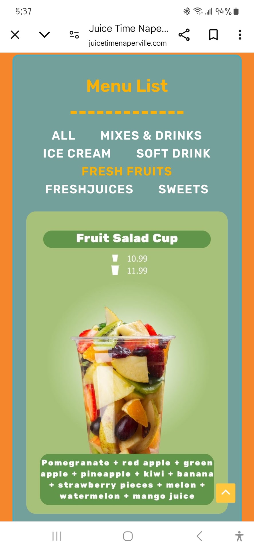 Read moreUpon entering, I was surprised to see the establishment was busy. I had a $20. certificate to use, and I grabbed a menu, I sat down and tried to figure it out. The menu is difficult to understand. I ordered a large fruit cup based on the picture I was planning on eating the fruit for breakfast. I also ordered a mixed fruit and ice cream for the drive home. After waiting over 15 minutes, my # was called, and the order was not prepared to go as requested. The fruit cup ended up being a smoothie with some fruit on top that went directly into the garbage can because it was not a fruit cup. The mixed fruit and ice cream dessert was delicious. Because the establishment is not at all comfortable, the menu is difficult to understand, and the lack of customer service, I will not...