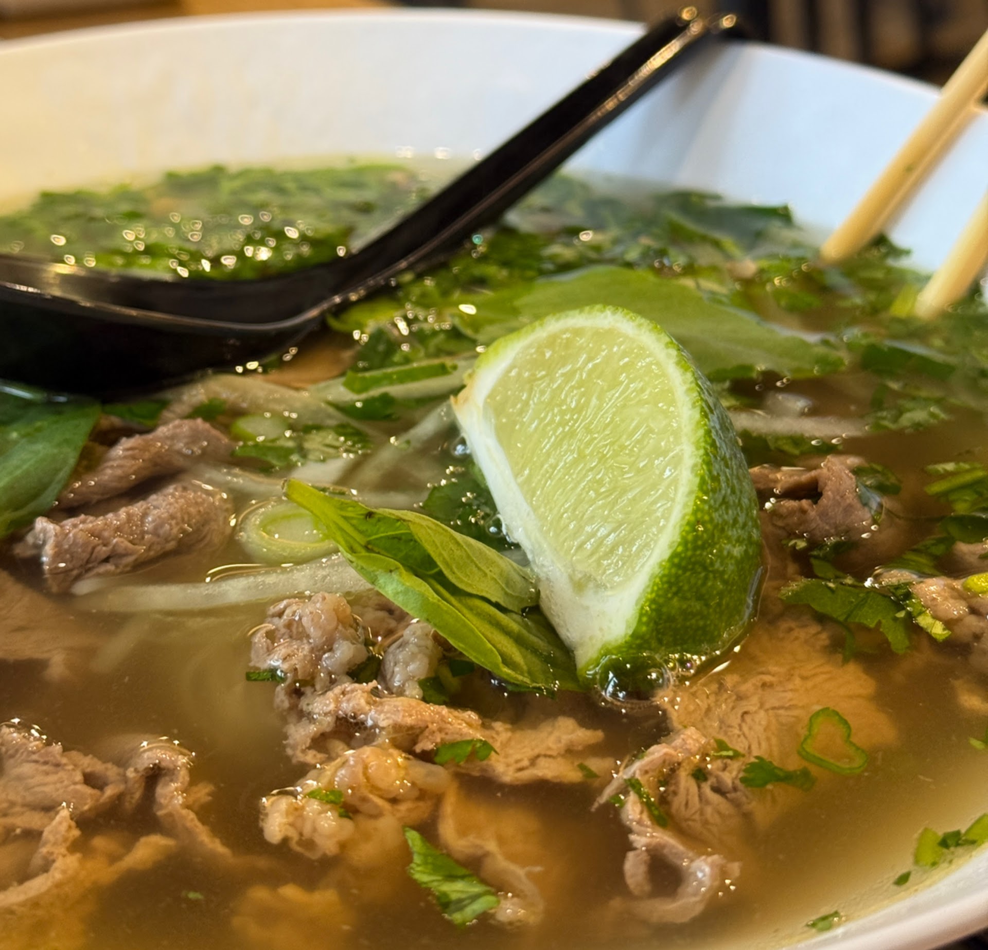 🍜 Pho They’ve nailed it! Each bowl comes loaded with onions, scallions, cilantro, and all the fresh fixings like basil, beansprouts, and lime on the side. Comfort food at its finest.