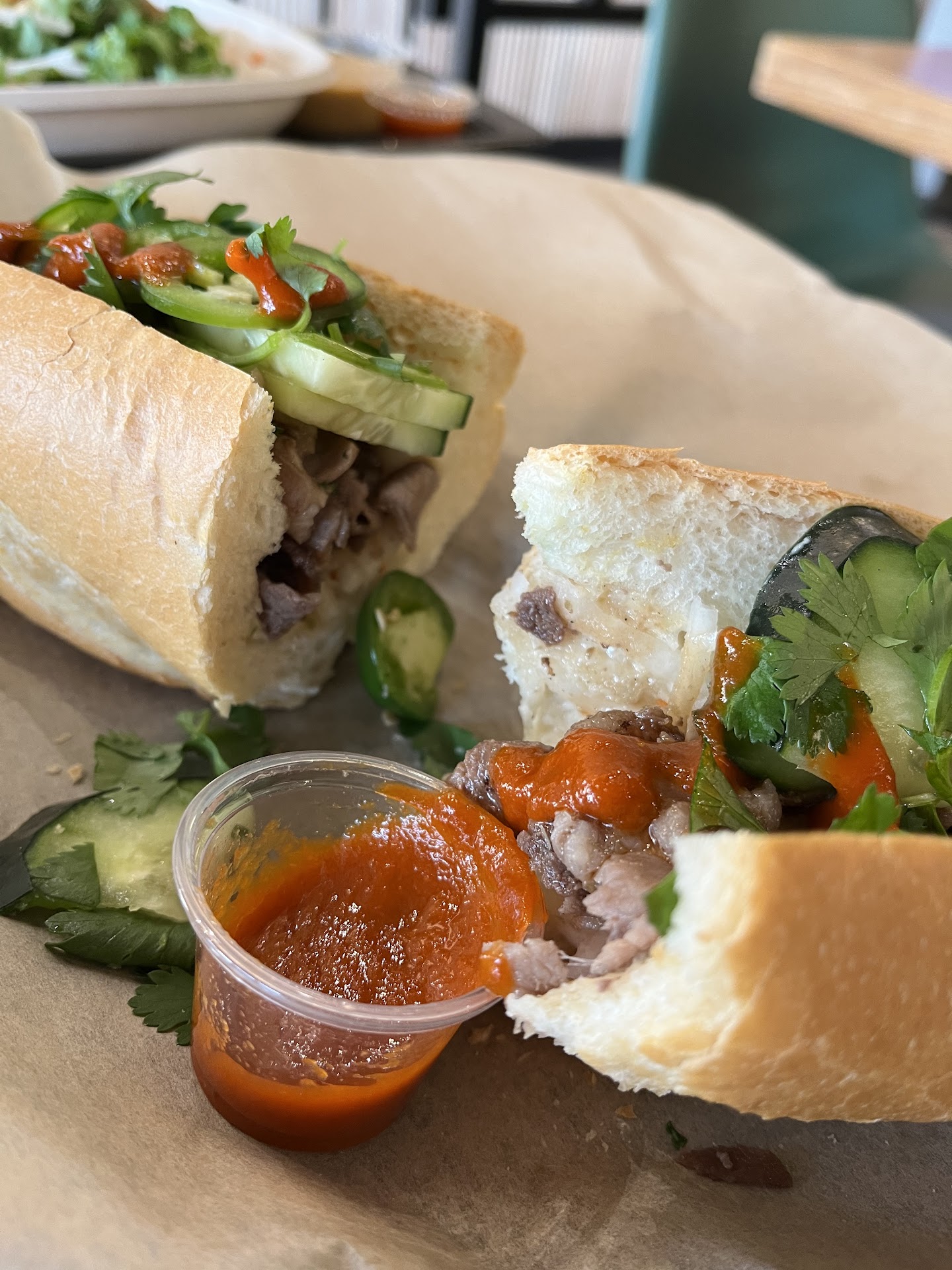 The food is good. The server or cashier who took our order was friendly. The self-serve kiosk where you order your food from was very easy to use, and it designed with an intuitive user interface. The atmosphere is welcoming (maybe because it's well lit with natural light), drawing you to 'stay a while an eat'. My wife ordered the Chicken Pho. It was a portion enough for two people! The broth was very flavourful. This is the soup you want to eat if you need to clear your sinuses if/when you are feeling the initial symptoms of a cold. Add the sriracha and chili oil, then you will have a potent healing meal capable of elevating your core body temperature and kill viruses any bacterial lurking in your upper digestive tract.