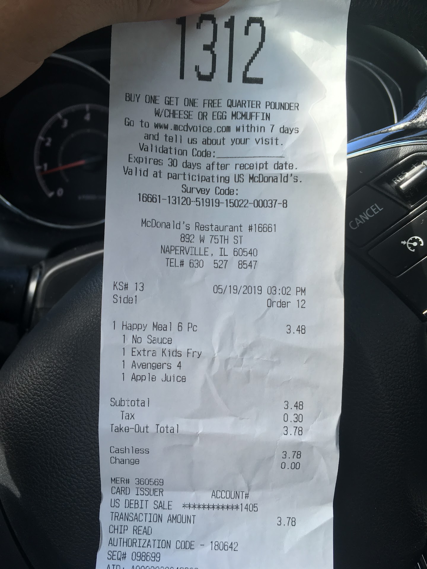 Read moreAnother day and my phone keeps wanting me to review this McDonald's. I guess the last one, and its grammar corrected accompaniment weren't enough, so I'll give it another try. What an amazing discovery! I must admit, with it's Irish surname, I was expecting some corned beef or shepherd's pie on the menu, but alas, none were to be found. Instead, there was an entire menu of hand held food that was available for quick retrieval after driving in a line and having a conversation with a robot. The food itself seems to be made from a plastic by-product, but it was small enough to fit in the front pocket of my white suit without much fanfare. I heard mention of a clown that seems to be a deity around these parts, but luckily I didn't see him. I made sure to steer clear of the storm drains. Overall, a very interesting experience, and I'll be sure to return, if I ever...