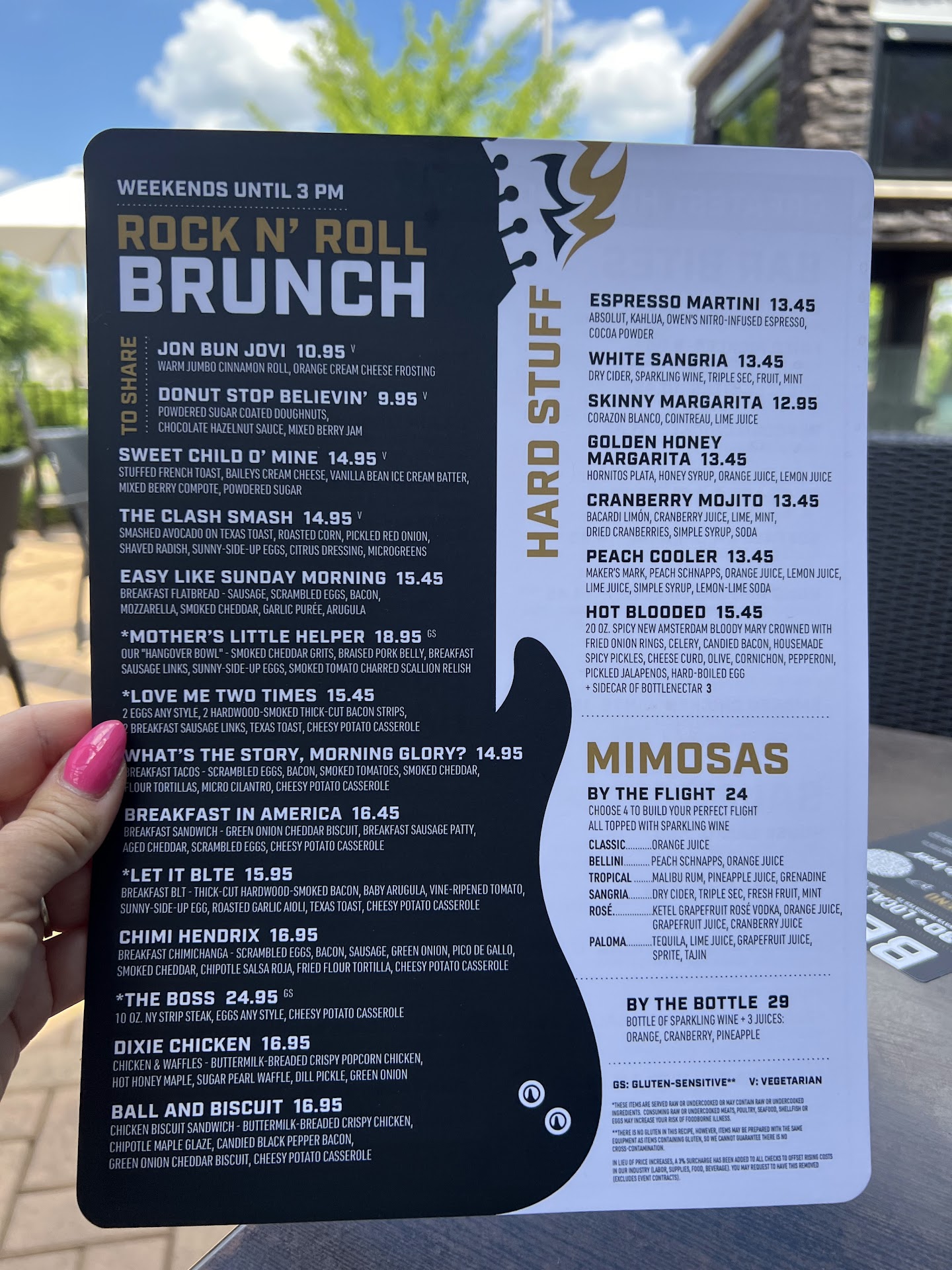 Read moreWe sat outside because we had our dog with us. There were others sitting outside as well. It took forever to get a server to come by our table. After tge hostess sat us several servers walked by, looked at us, and walked away. We finally motioned for one to come over who said they would find out who our server was. And we waited some more. Meanwhile the hostess sat another party behind us. Finally a waitress came out and apologized and said she’d be our server. You could tell she had a sense we’d been waiting quite awhile. She took our drink order but not our food order and instead of going ahead and placing the drink order inside to expedite things for us she instead went to the table that just sat down to get their drink orders. Their drinks came out before ours as did their food. Food once it arrived was pretty good. They were serving from their brunch menu. I got the “Ball and Biscuit” which was a chicken biscuit sandwhich with chipotle maple glaze, candied black pepper bacon on a green onion cheddar biscuit and it came with a side of cheesey potato casserole. It was good, definitely a fork and knife sandwhich. My husband got the Nashville hot chicken wrap which he aid was ok, nothing special. For my drink I got the Bourbon Smash which was made with mango syrup, strawberries, mint, and orange bitters. It was pretty much colorless when it arrived which raised speculation. It was good but I didnt taste much if any mango., but still had a good flavor. When we got the check the server handed us a “we value your opinion” survey QR code and apologized again for having us wait so long and followed that with how much she’d appreciate a 5 star rating…. A...