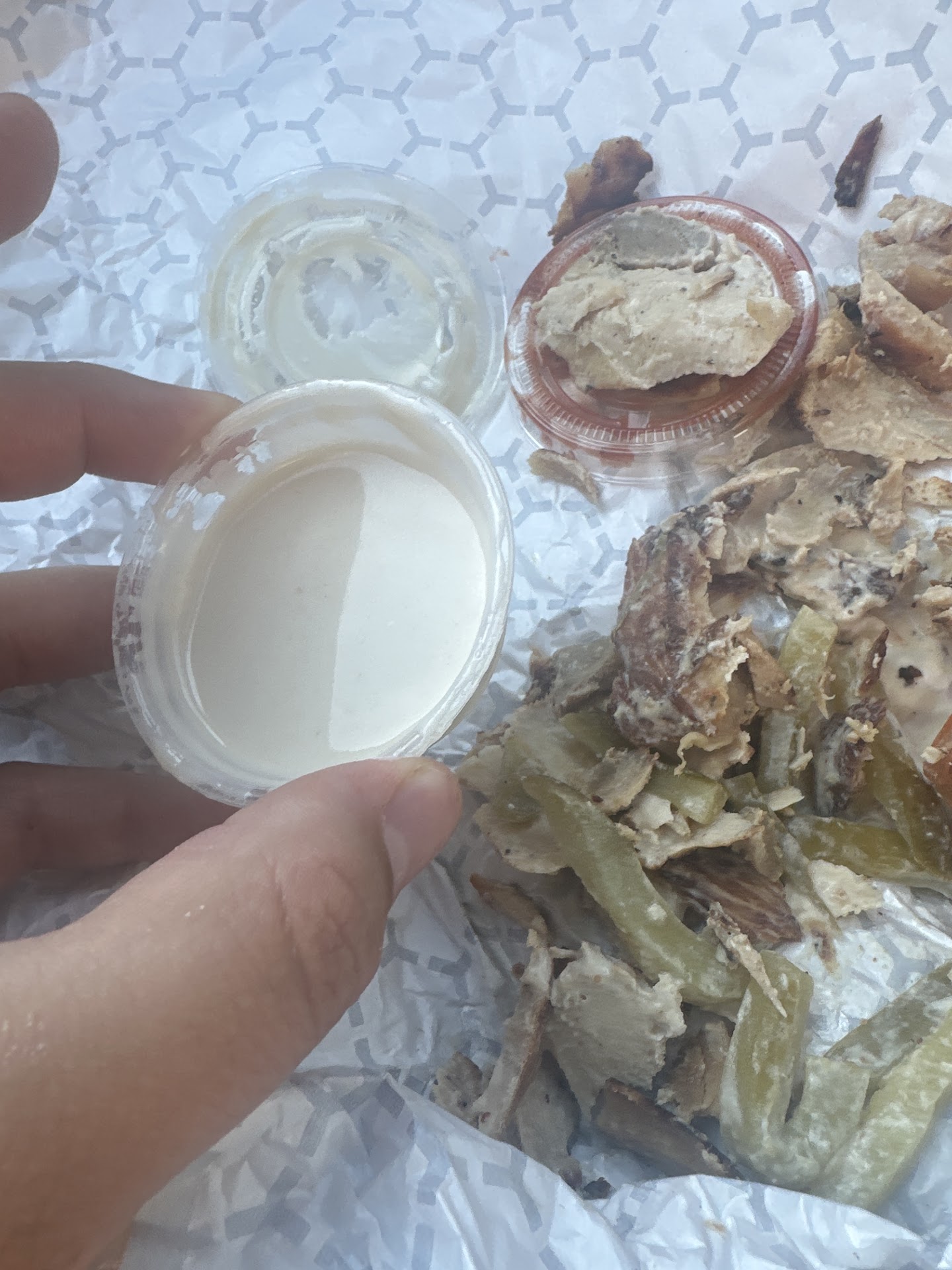 The tahini had a tangy after taste and tasted more like yogurt. Not enough sesame.