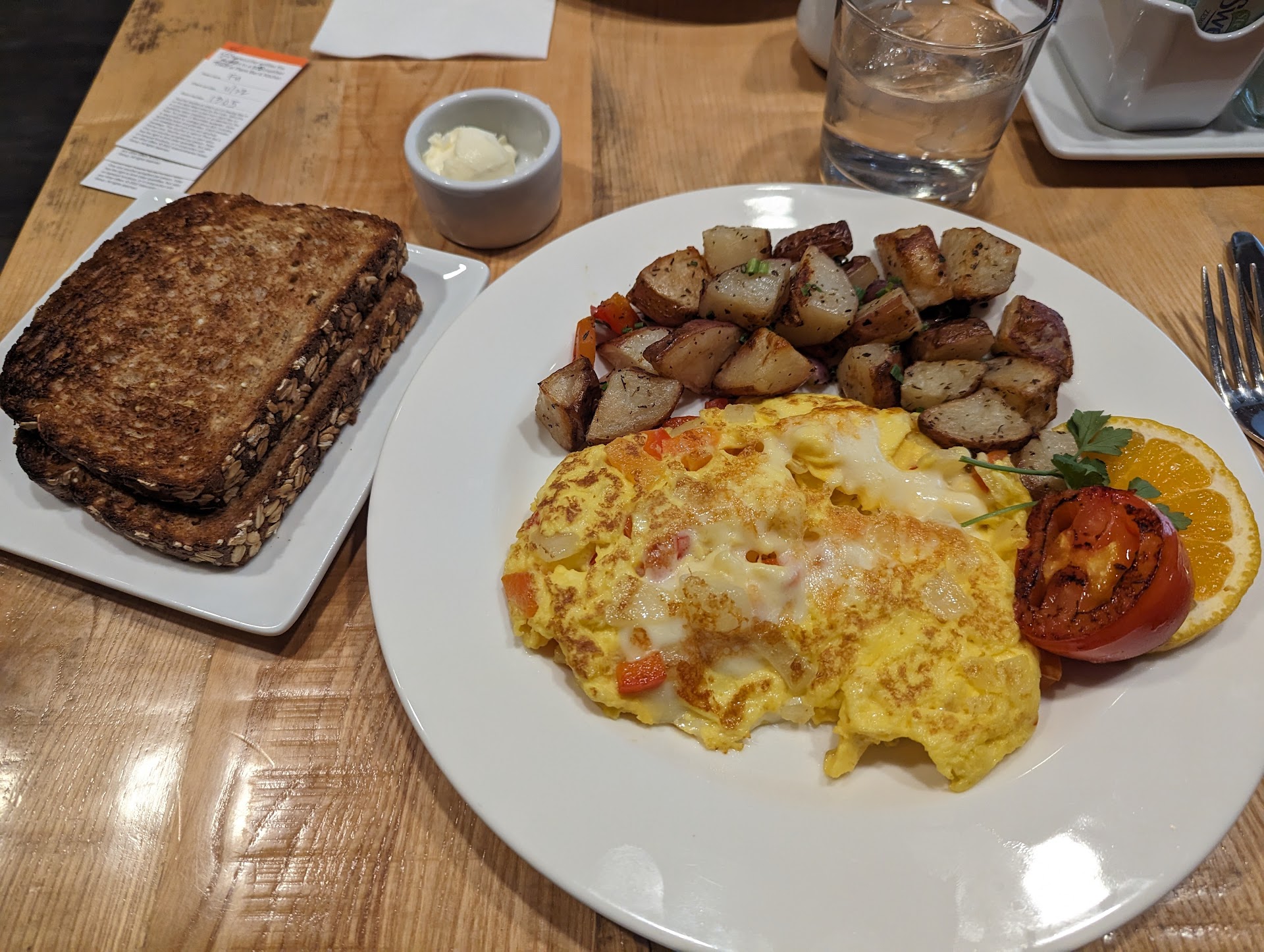 The potatoes were really good, and even the wheat toast was incredible. My mom also likes the jams they provide. All around just excellent food and service. Yes, it was very pricey for breakfast, but I left sated.