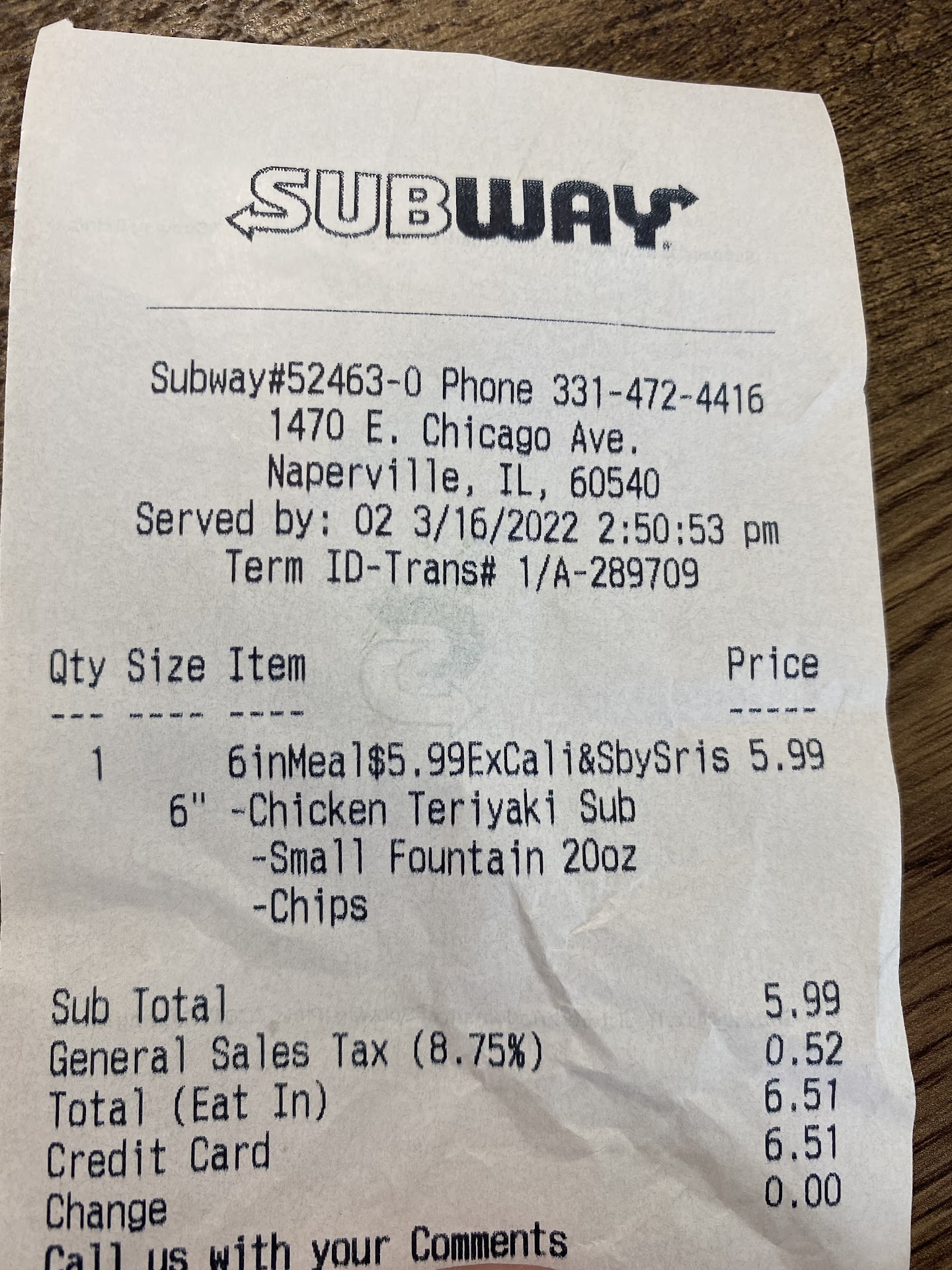 Read moreThe Chicago Ave., Naperville Subway made us two of the best Subway sandwiches we have ever had! I downloaded the SUBWAY® app for the first time ever; and it’s very user-friendly, and it gives you a very specific detailed list of ingredients and you can choose “less,” “regular,” or “more” for each.