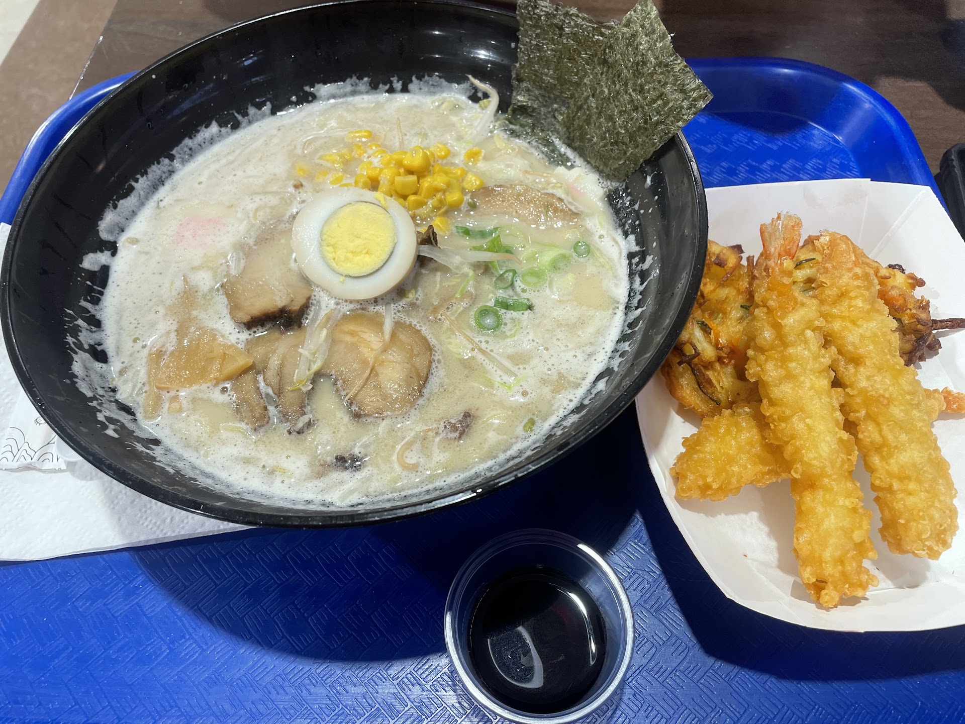 We ordered the Seafood Udon and the Tempura Udon, both which were pretty good, considering the lower than average price point. The seafood was abundant, but it wasn't terrible nor amazing; additionally, there was a trouble regarding the mussels not opening properly, resulting in pieces of shell in the soup. These pieces were easy to miss, so you might not even find any pieces in your bowl of Udon, especially if you don't even order the Seafood Udon. The shrimp was great, the scallops were a bit rubbery, but everything else was fantastic. It's in a food court, so you should except that the tables aren't going to be perfectly cleaned and that you have a responsibility to return the used silverware and bowls back to the restaurant. The guy at the front was also very nice and helped us answer a question we had, though that may be irrelevant if he's not working if you decide to go. Overall, it's a good food court option, if you're in the mood for a little...