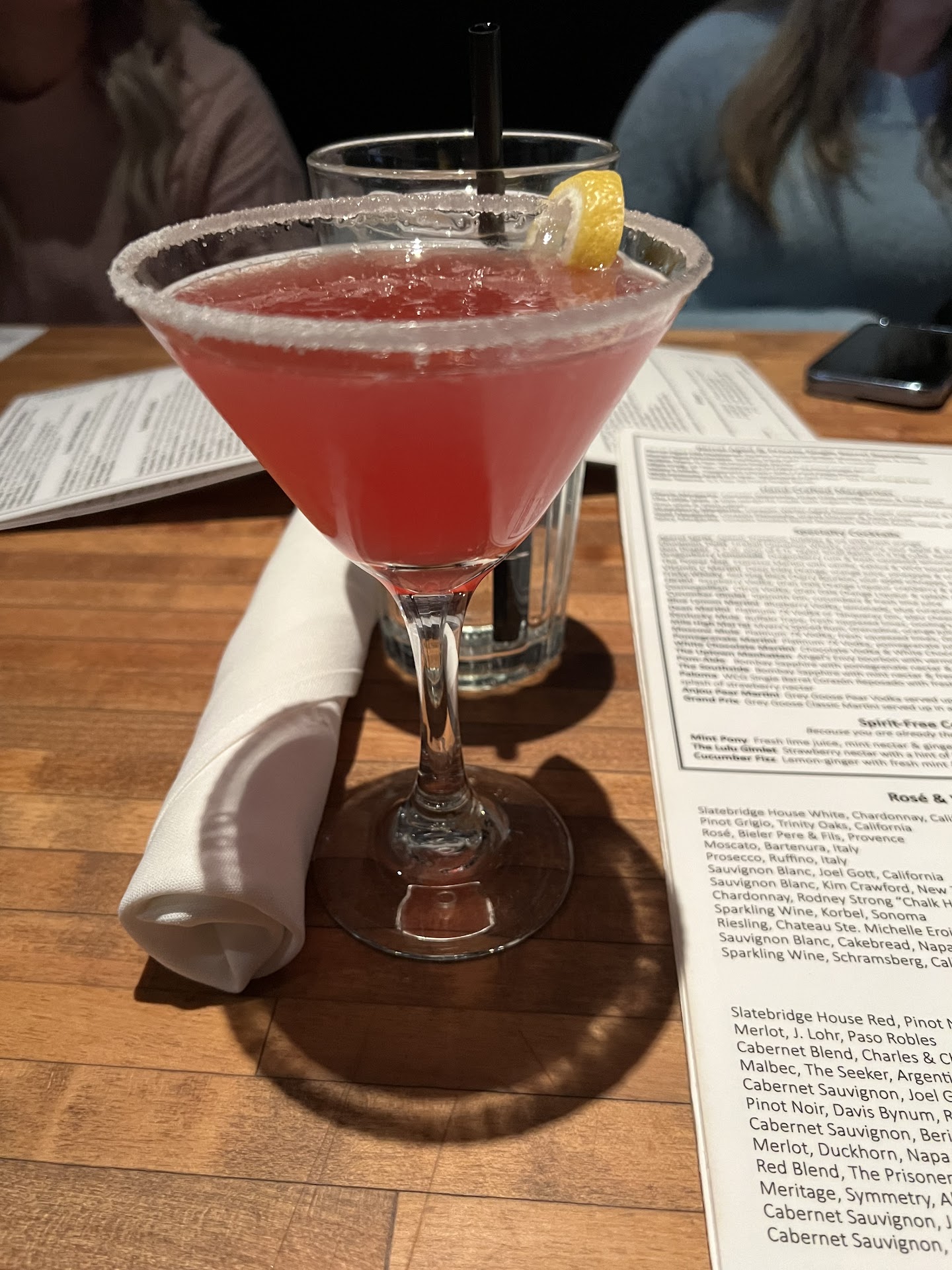 I also had a pomegranate martini and I enjoyed the drink, just wish the rim was salt instead of sugar. 6/10