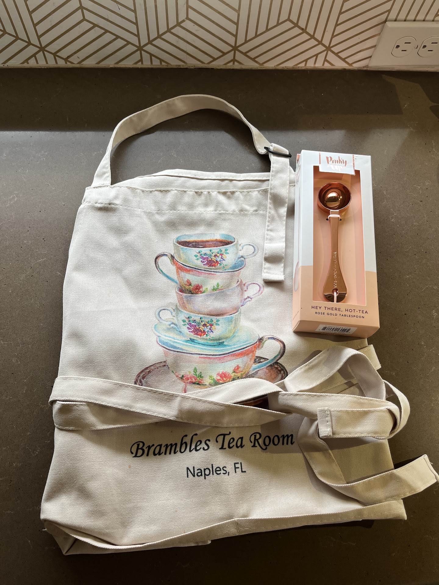 Their tea menu includes abput 30 teas, all of which are available to purchase in the connected gift area. I had the Buccaneer, which was strong on chocolate flavors, and walked out with sachets of that and the peach brandy tea.