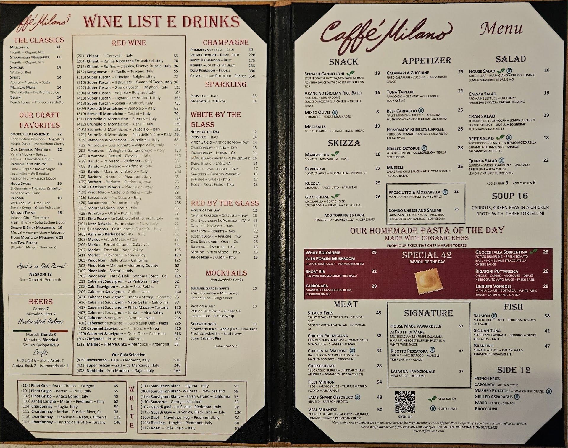 What I appreciate about Caffè Milano is that it strikes a perfect balance between a nice dining experience without being pretentious. I felt at ease bringing my young children along, even when I was dining alone with them while my wife was out of town. The staff made us feel welcome and accommodated our needs, creating a family-friendly environment.