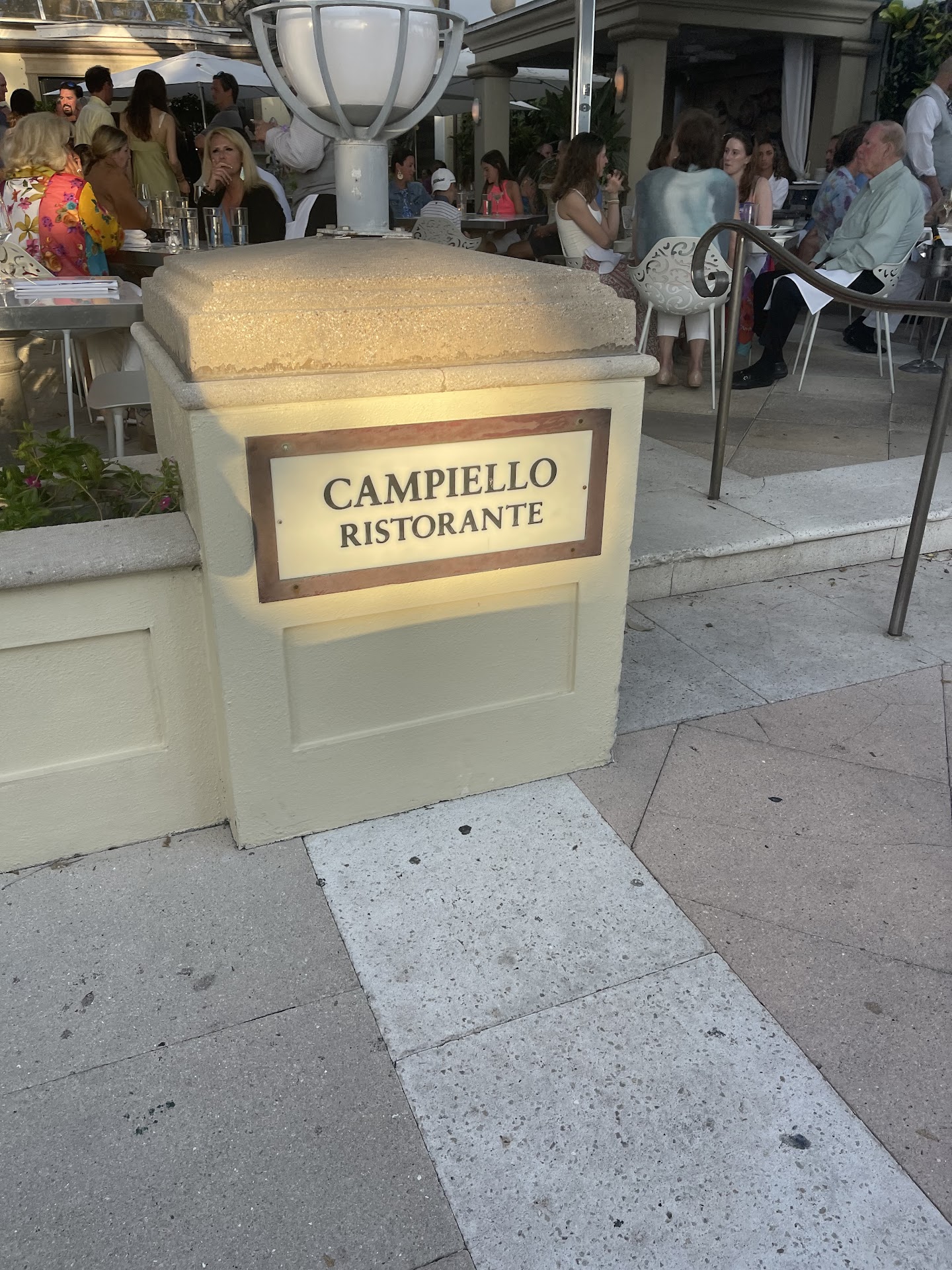 Read moreMy wife and I had dinner here last night. We are snow birds in our third season and are enjoying our retirement. We were regular customers at Campielloâs during our first season. The food was reliable and service impeccable. Last year, we felt these standards start to slip so we reduced our patronage substantially. Our view is very basic, if youâre paying north of $200 for a meal, you deserve to be well treated and fed well.
