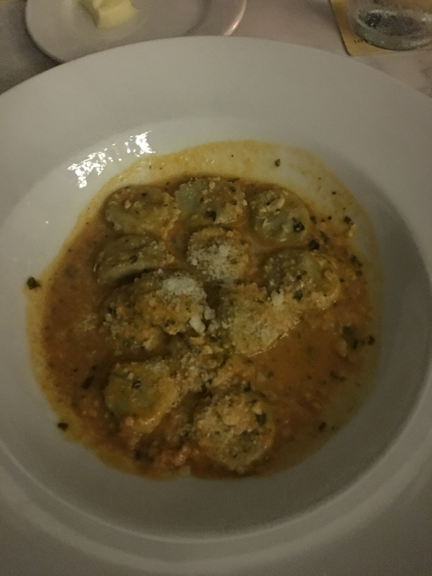 For my main course, I opted for the ravioli, a dish that promised the richness of house-made pasta with a nuanced depth of flavor. The presentation was elegantâdelicate pasta parcels arranged with precision, glistening under a velvety sauce that hinted at slow-simmered perfection.