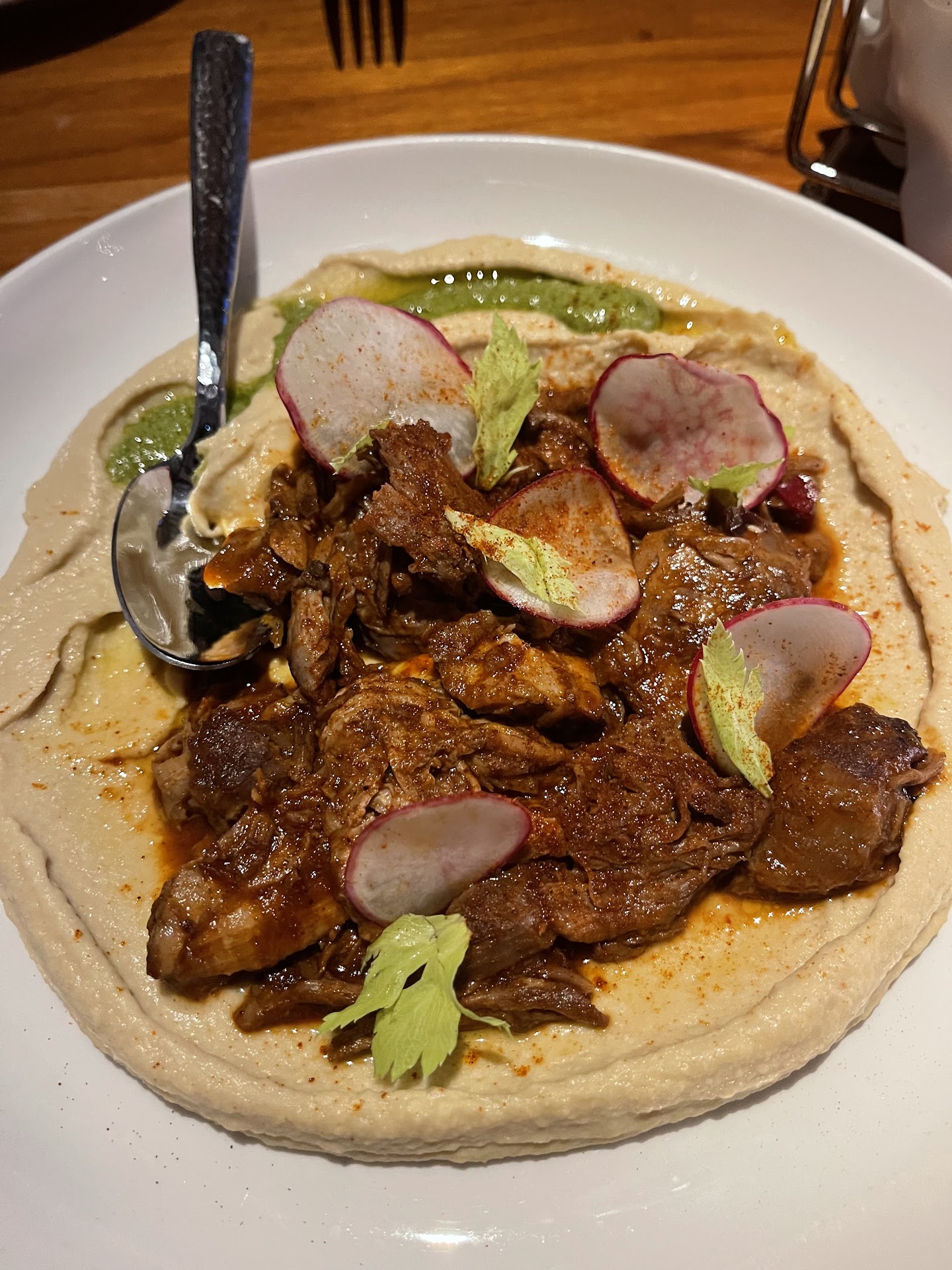 We found the Mediterranean focused food to be very good, sharing the snapper crudo, spicy lamb Turkish pizza, loaded hummus, roasted cauliflower, and the lamb meatballs.We opted for splitting several mezze/appetizers as the main dishes seemed a little overpriced. The food quality was excellent, and the sommelier was helpful in selecting a bottle of red that paired nicely with our tastes. The wine list is loaded with the expected West Coast pinot/cab selections that you'll find at every high-end restaurant in town, but to their credit did feature a few dozen different styles/varieties from across the world. Service was very slow at the end paying our bill, and seemed a little disorganized as we were trying to pay and leave. Overall, very good food, but disappointing that they seemingly overbook reservations and our visit took much longer than it needed to...