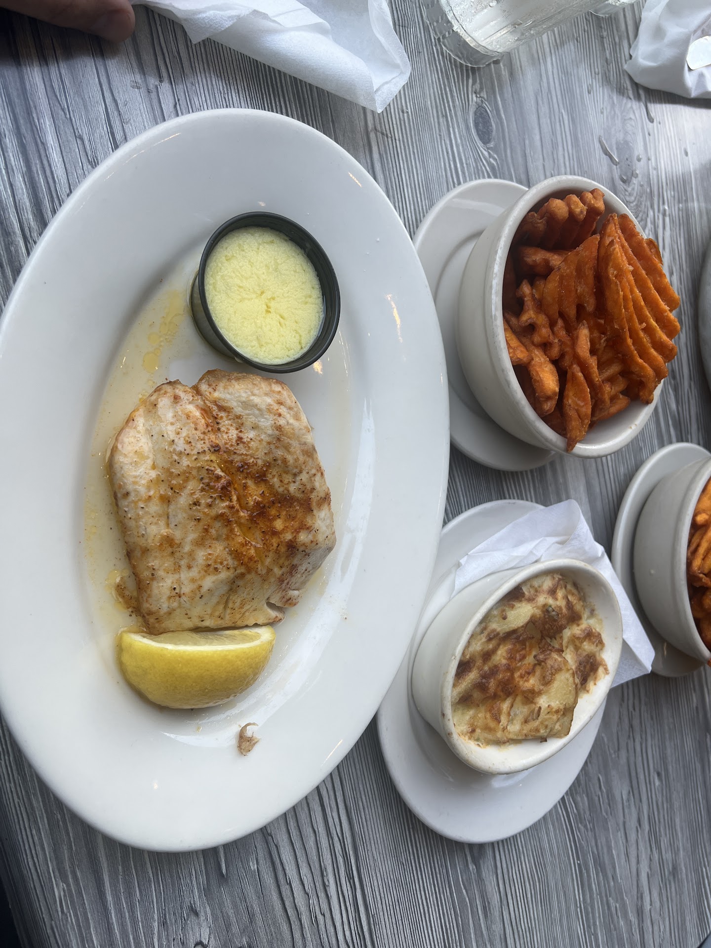 The culinary journey at Mr. Big Fish took my taste buds on a delightful adventure. The Mahi Mahi, in particular, was a standout dish, perfectly cooked and bursting with flavor. The sweet potato fries and potatoes au-gratin complemented the main course impeccably, offering a diverse and satisfying palette of tastes and textures.