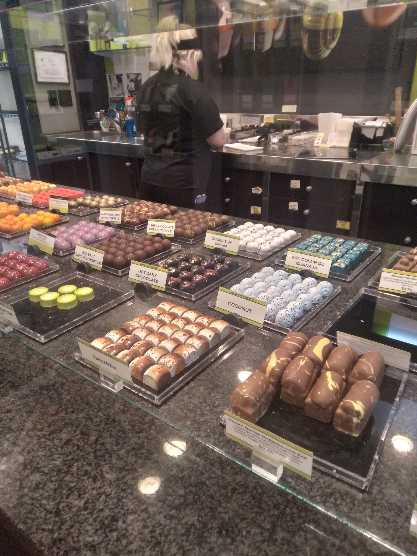 Read moreThis place is amazing; fresh and unexpected. Friends highly recommended it, and treated us to some truffles unlike any I've tried before. Normally, I'm a fan of dark chocolate and not interested in anything else, so what stands out to me the most about these treats is that I actually preferred the flavors I was not initially drawn to; in particular, the fruit choices (such as Florida Orange, Lemon Bar, and Mango which are all made with white chocolate). It made more sense to me once I realized that actual fruit is used in the recipe, rather than extracts and flavorings. The other feature that stood out was the decoration of each truffle. Browsing the display case, the chocolates appeared to be artistically influenced by a combination of the natural wonders of Southwest Florida, and Jackson Pollock-esque...
