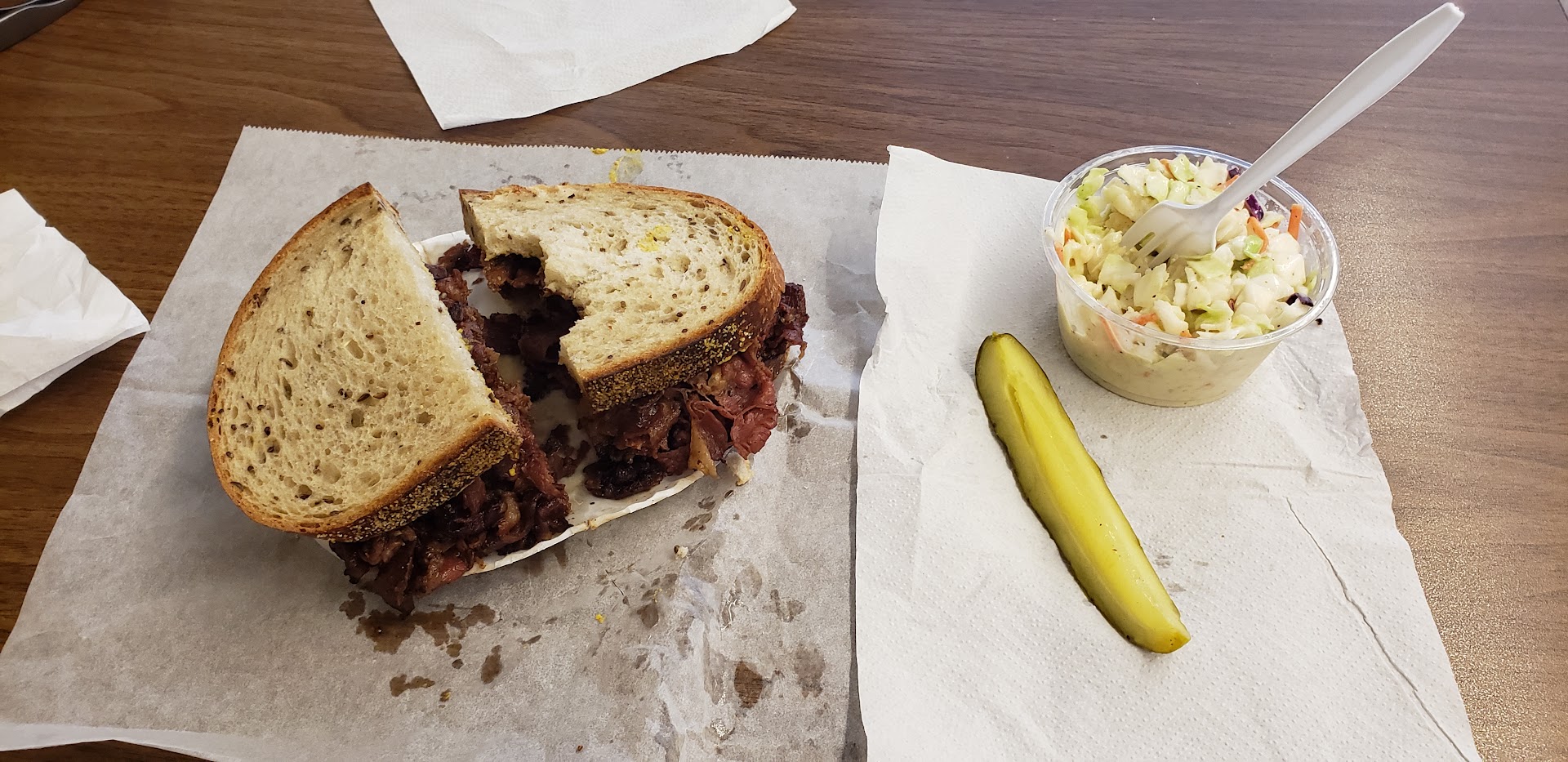 Read moreAfter reading the reviews, I'm just happy I didn't see anyone compare this place to Katz or anything in NYC. I love pastrami so I figured I'd give it a try. The service was very friendly,the atmosphere pretty blah. That didn't matter to me. But I shelled out $25 for a pastrami sandwich. No drink no fries. All I got was a side of Cole slaw and Russian dressing bc I asked for it "NY style ". The pastrami is crazy cheap and skimpy. It looks like it's shaved. I paid NY pastrami prices for an Arby's roast beef sandwich. Anyone who can compare this to NY should be tar and feathered. I gave it 3 bc the lady was friendly and the sandwich tasted "ok" . I'm going online tonight and ordering 2 lbs of...
