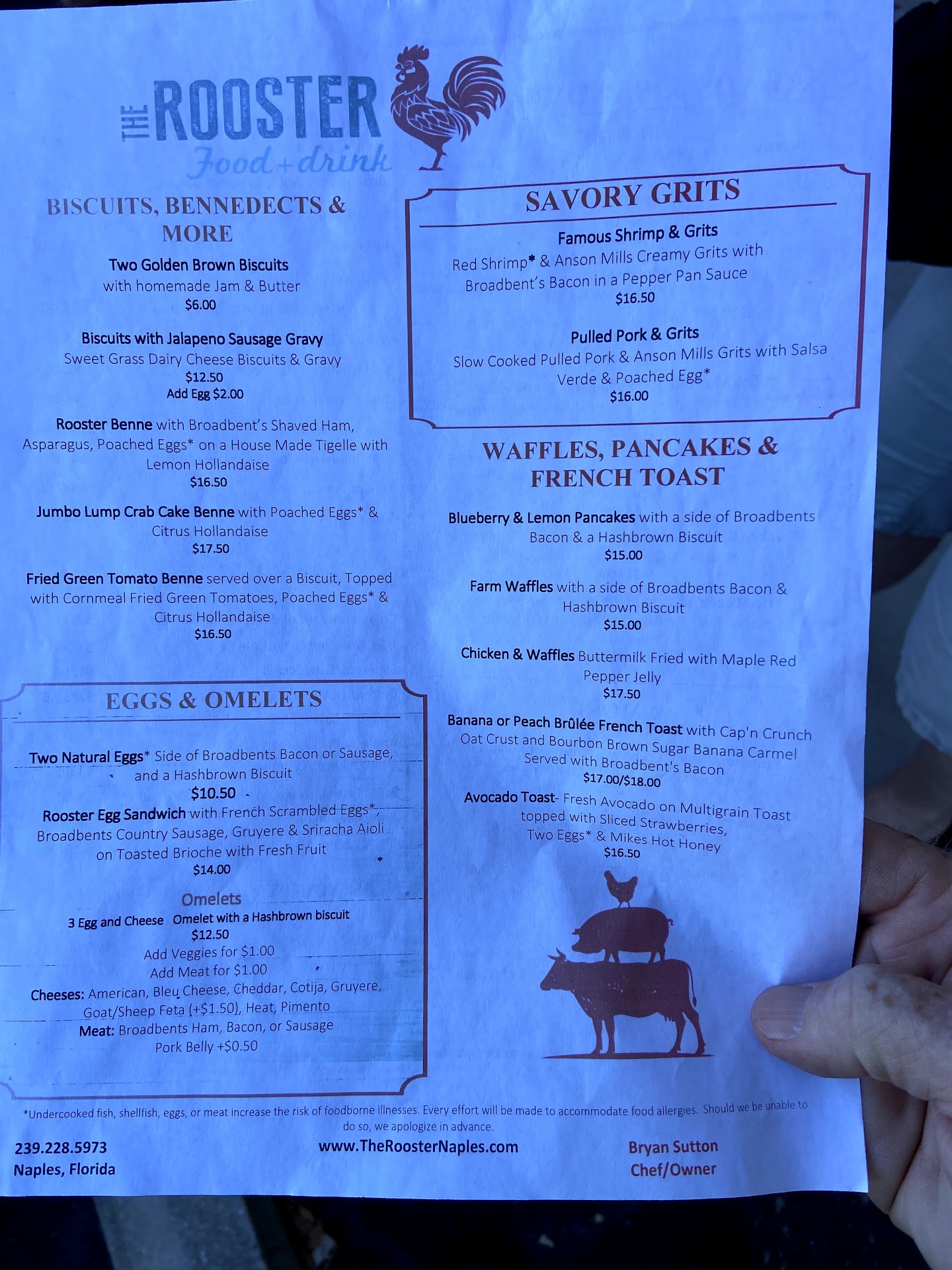 Read moreMy boyfriend and I had been itching to go to The Rooster since they opened but just recently made it in, we were VERY impressed! He ordered the Shrimp & Grits which was easily the best we have ever had – so creamy and the shrimp were huge. Definitely not your typical little salad shrimp! My dad kept it simple with eggs and bacon, he loved the eggs and how fresh they tasted.