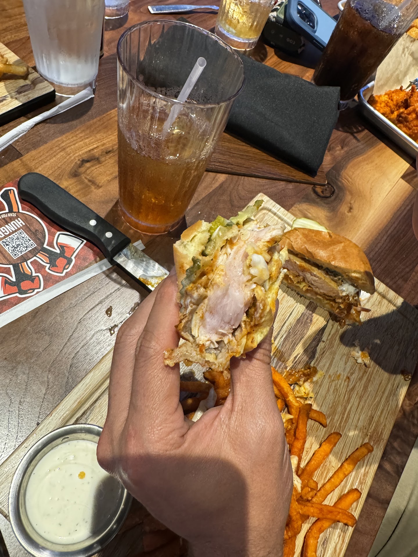 Raw chicken, no managers, long wait times. Went in with a group of 12. After waiting 30 minutes They couldn’t accommodate the group size and get us all at one table so we were split up. The server, Tish? Was actually really nice and has a lot of potential, you could just tell that she needed a bit more training on the POS system and mostly support from management. We arrived at around 8:45 finally sat at 9:15 and didn’t receive our food until 10:30. When we did get our food I notice my buddys chicken sandwich that he had been eating was raw. Then another person at the table that had ordered the same sandwich noticed hers was also raw. There wasn’t one manager on the floor that we could speak to so we had to find Tisha who was already very overwhelmed and under a ton of pressure as the kitchen wasn’t getting food out. Finally around 10:50 they did get the meals replaced. None of the food runners knew where the food was going and one even expressed her frustration with someone at the table when we told her the food she was holding wasn’t ours. The other table had been missing food as well which they did resolve. We all ate pretty quickly as none of planned on this being a three + hour ordeal. That’s when the next wait came. We could see Tisha struggling at the pos. I’m not sure really what happened but we all had to wait around 30 -45 minutes to get our cards back and leave. Management needs to step their game up and get the staff the proper support and training they need. It seems like this place was in such a rush to get the doors open they totally neglected their...