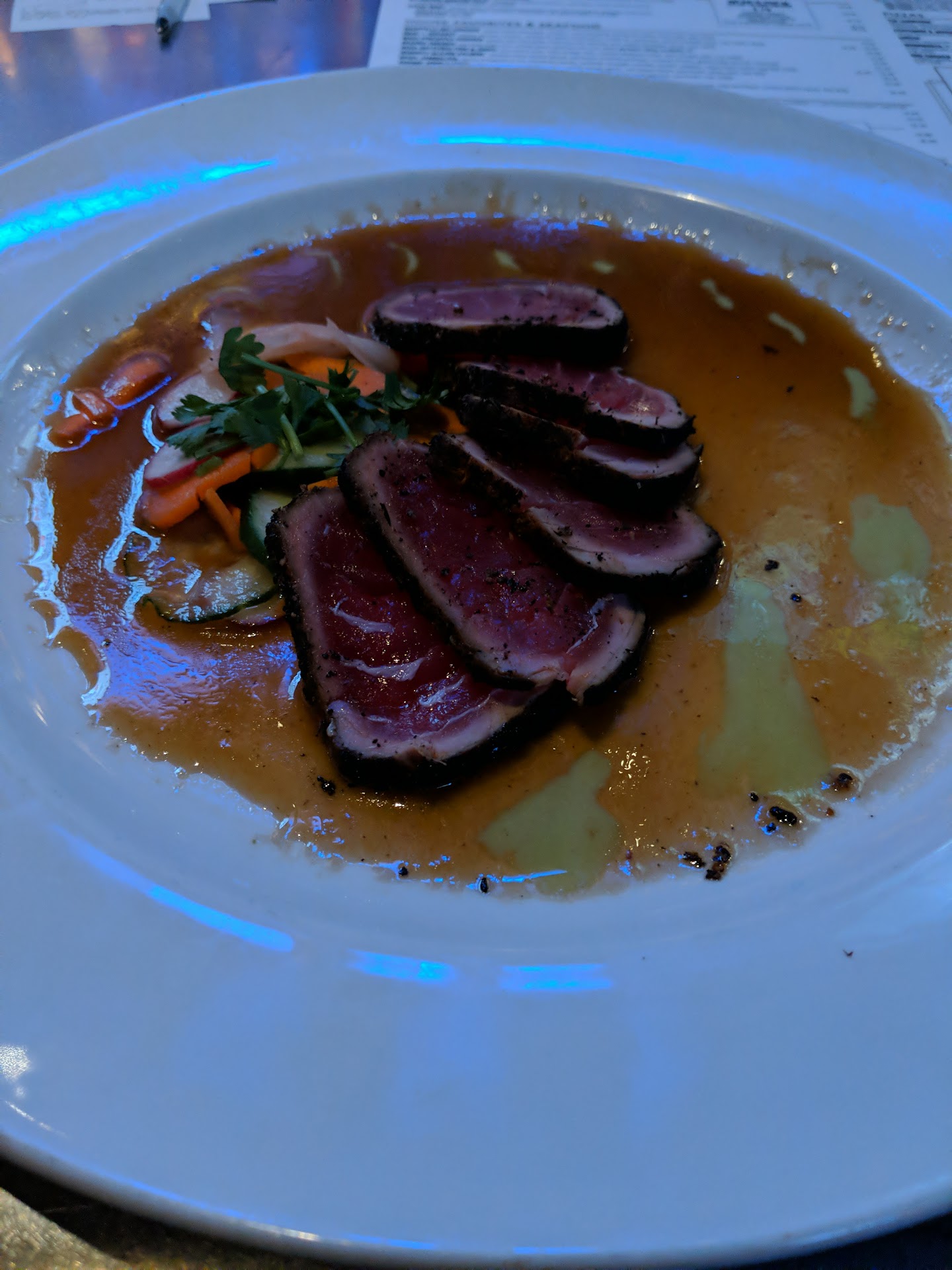 Read moreWent here last night for dinner and decided to sit at the bar. There were 3 bartenders, one had long dark hair, one had blondish hair and one was a tall guy with dark hair who I think was new. We were greeted promptly initially but the service was terrible from then on out. The bartender with the blondish hair seemed to be working the other side of the bar and she was the only person who helped us with anything. The girl with dark long hair was talking to some girl the entire time (who I’m pretty sure also worked there) and didn’t even acknowledge us. We got our food order in finally by the new guy and we asked for some modifications and extra sauces. When we received our food we didn’t have the sauces or modifications correct. We waited for awhile and no one came over so we ate the food without them. The lady working the other side of the bar did come over finally to ask if we were okay and we got the additional items from her. She was great, but the young girl with the dark hair wasn’t doing anything but talking to her friend and the service was non-existent from her. Next time we’ll sit on the other side of the bar. Also wanted to note it was around 9:45 when we dined and there was a cleaning lady throwing buckets of sanitizer on the floor that stunk like bleach. Not something we want to smell when we go out for dinner. The website stated you close at midnight so I’m not sure why this cleaning started so early in the night when the bar still had people at it. I work in the industry and it’s frustrating that every time we go out we can’t get...