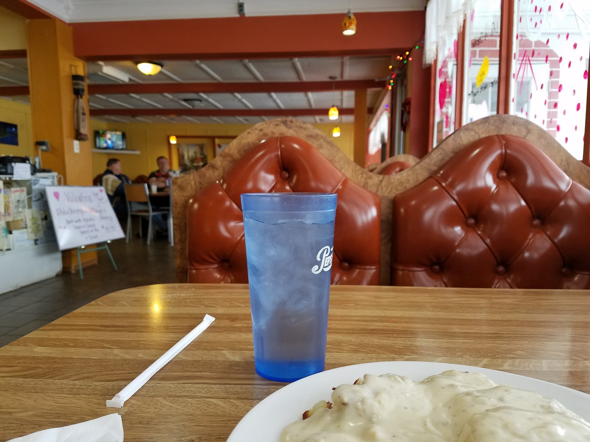 Ā Ā Ā Read moreThought this would be a neat little home town place but it could use some updates. Some men were discussing town issues and one was rather loud and vocal concerning his displeasure which was interesting. The food is not the best in town as the sign out front indicates. My husband had fried fish which āmehā.I had a turkey Manhattan and with the first bite was very disappointed. Since Iām not a picky eater, I truly tried to eat it. The turkey was very generic slices and I managed to eat it but the gravy was nasty. The mashed potatoes were disgusting as well. They tasted old like they had been in the freezer, thawed then heated in a microwave! Needless to say I left a full plate of bread, gravy and potatoes. I mean how can mash potatoes be so messed up? I would not recommend that restaurant at all. Robert Irvine would blast them for such...
