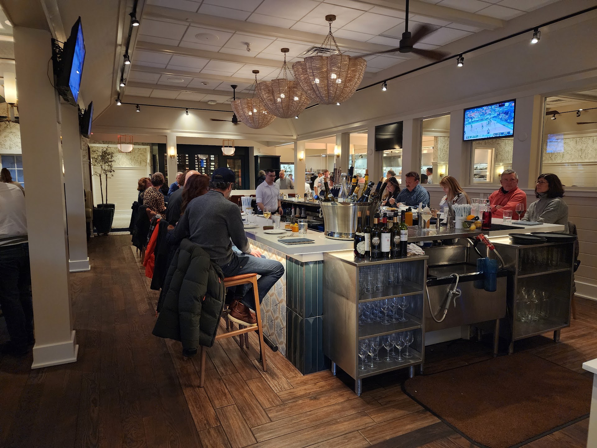 Warm incandescent lighting shines on white paneling in an interior that feels both cozy and open at the same time. There was a pretty healthy crowd, but we could easily converse without straining to hear one another.