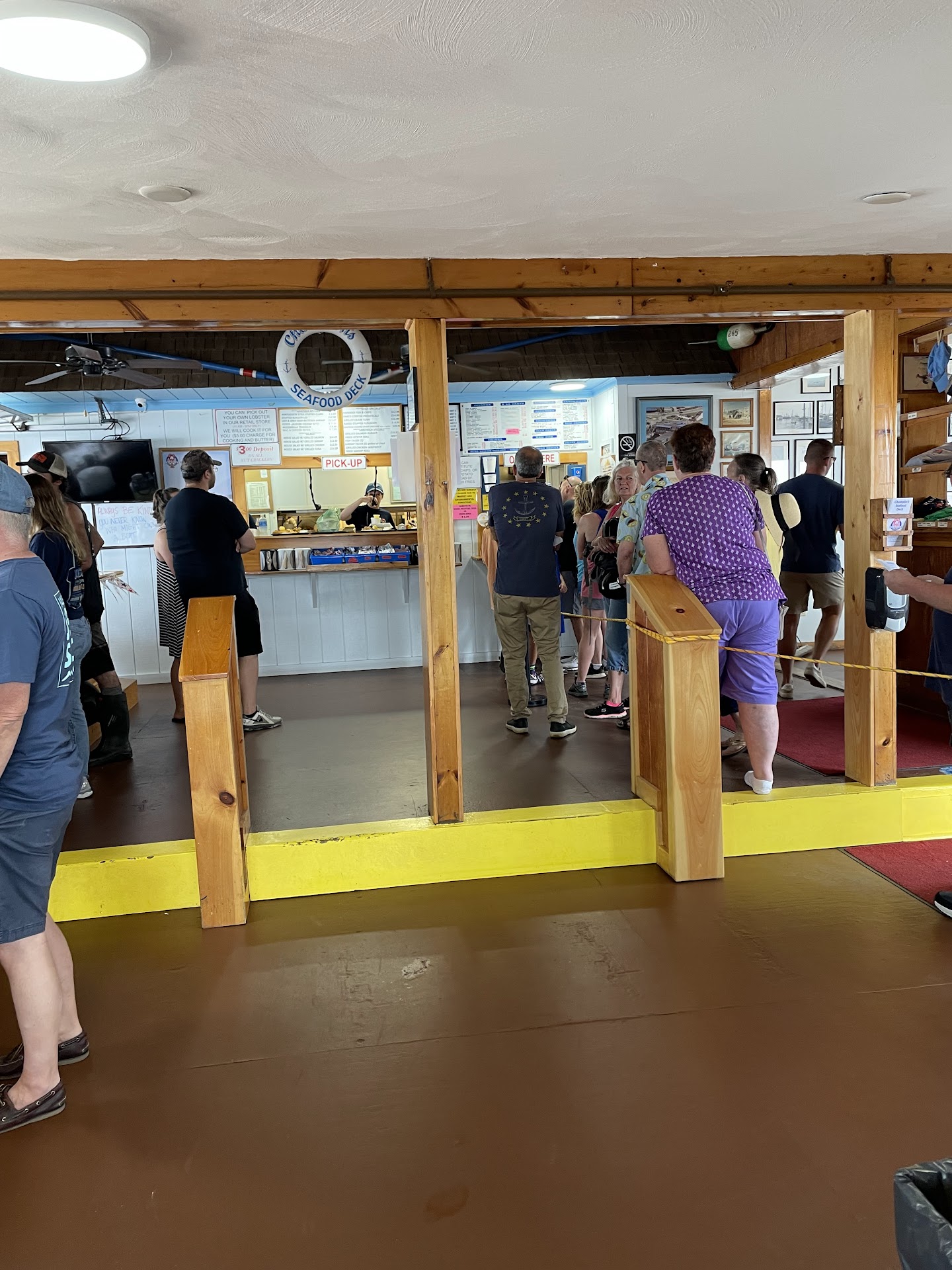Read moreThis place must crush it with tourists with its great location. That said this place is for the birds. When ordering we were told there are no combo plates, so if you want clams and scallops you have to order them seperately, scam. What seafood place doesn't offer combos!? So I get the scallop plate and shrimp order but want rings instead of fries, the girl quickly told me, we can't substitute. So I offer to pay upcharge for rings she still insists we can't do that. So they literally cant put food and rings on the same plate!? Its like a weird kosher seafoods stand! Actually its just a shack taking liberties. So I have to order seperate rings. Then I want to order a kids fish and chips, I ask is it haddock, nope its flounder. So I ask if I can just get a piece of haddock for her. Nope! They really stand there and tell you they can't fry up a piece if haddock! We can't do that over and over. So we get the food, scallops tasted fishy, the shrimp were in a southern grits type batter and the fish was paper thin. This place serves bottom of the barrel. Looks like they wipe it down once a year and forget the bathrooms..urine smell is like old fenway! I never have time to leave reviews but for this tourist trap I made time. The sweet spot ice cream shop downstairs is amazing! Eat somewhere else then get the delicious dirty grasshopper of mint...