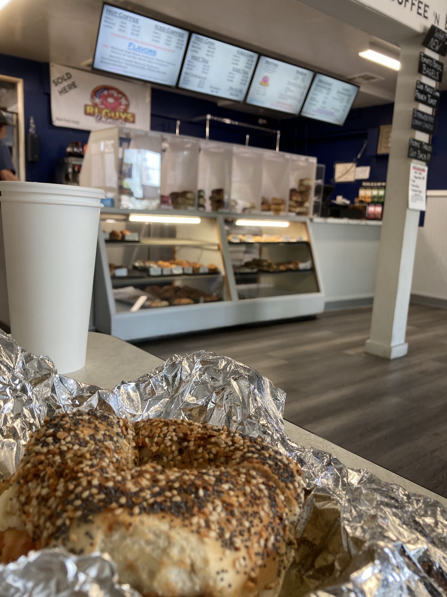 The coffee connection as it's known locally, is a Narragansett locals institution. I dragged my sorry butt in there as a teen, a hung over college student at uri and now pick up bagels by the dozen for my kids. These bagels are very large and bready and not for the carb counters. They used to have allies donuts but alas no more âšď¸ they do have an assortment of muffins and pastries but get there early. I think they now have ma's donuts which will not do. The staff is slightly surly and incredibly accurate and efficient. Don't screw up the two lines (tourists) get off your damn phone and bring CASH. (Don't forget to tip) If you go late morning you may get a contact high from the college kids. The jalapeno bagels make the best egg sandwiches with lots of ketchup, the sugar cinnamon with butter is a kid favorite but beware because the sugar goes molten in the toaster. I recommend the spinach with veggie cream cheese for the grab and go, everything bagel for a great turkey sandwich. They have a variety of coffee (and iced coffee) flavors but still use styrofoam cups (boo) they also carry newspapers for the old folks and more than one real estate deal has gone down in their tiny dine in section. I think that's it but...