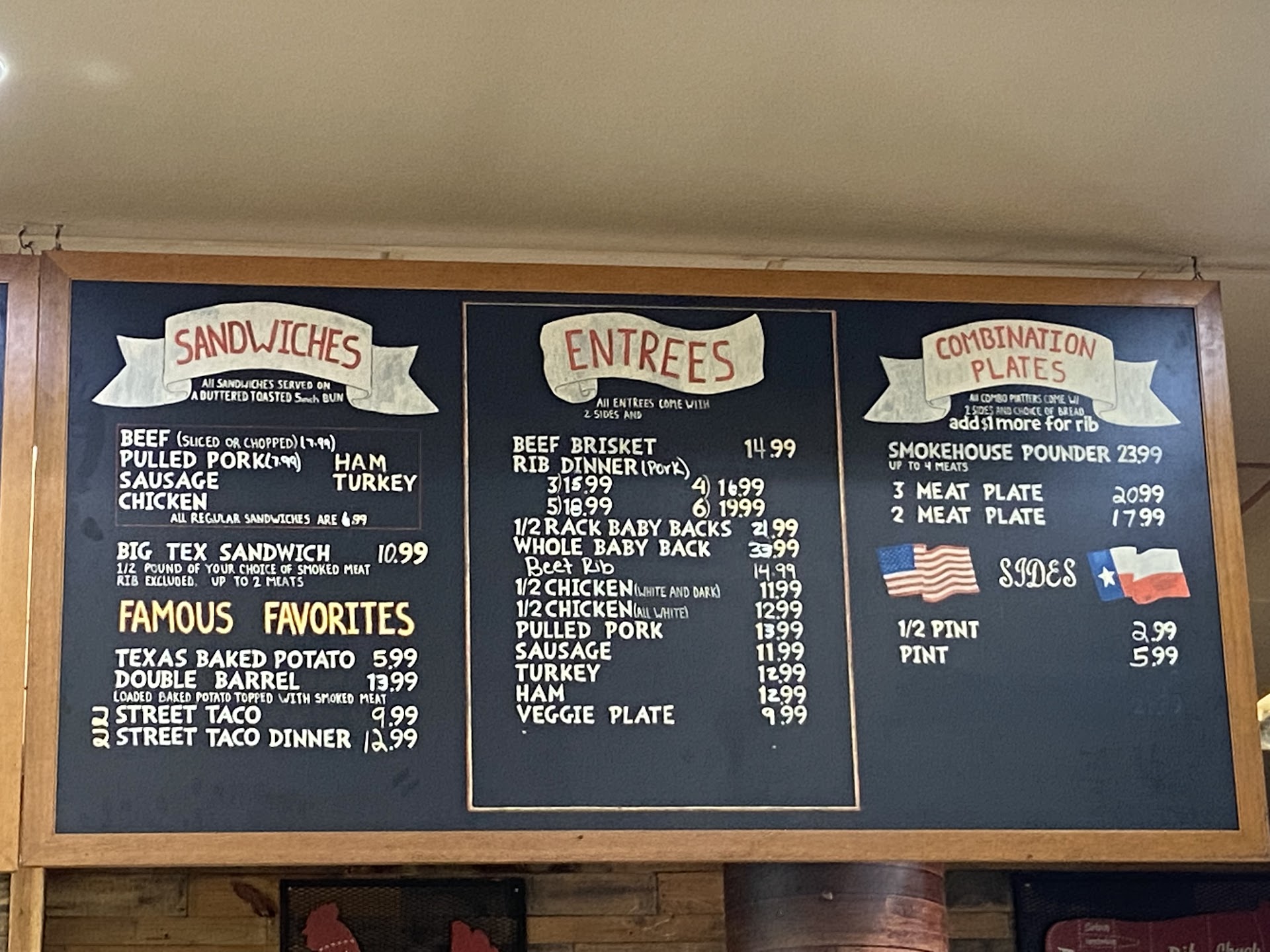 Read moreTried to get a full slab of ribs. The price on the board was $33.99, when rang up was 39.99. Said something about it. Was told prices went up, that's fine. Don't charge me a different price, then what is posted. Ask if manager was there, no. Asked to speak to who is in charge. The girl ( Feb 4 appox 3:45pm)said general manager is there, asked to speak to that person. She told me she wouldn't get him. She has a job to do and can't be bother with that. Your job involves customer services. That female always has a bad attitude. If you want alright bbq, a bad attitude, and guess how much they will charge( not posted price). Then this is the place. Only reason they got one star, there isn't a negative rating. Go somewhere else, you...