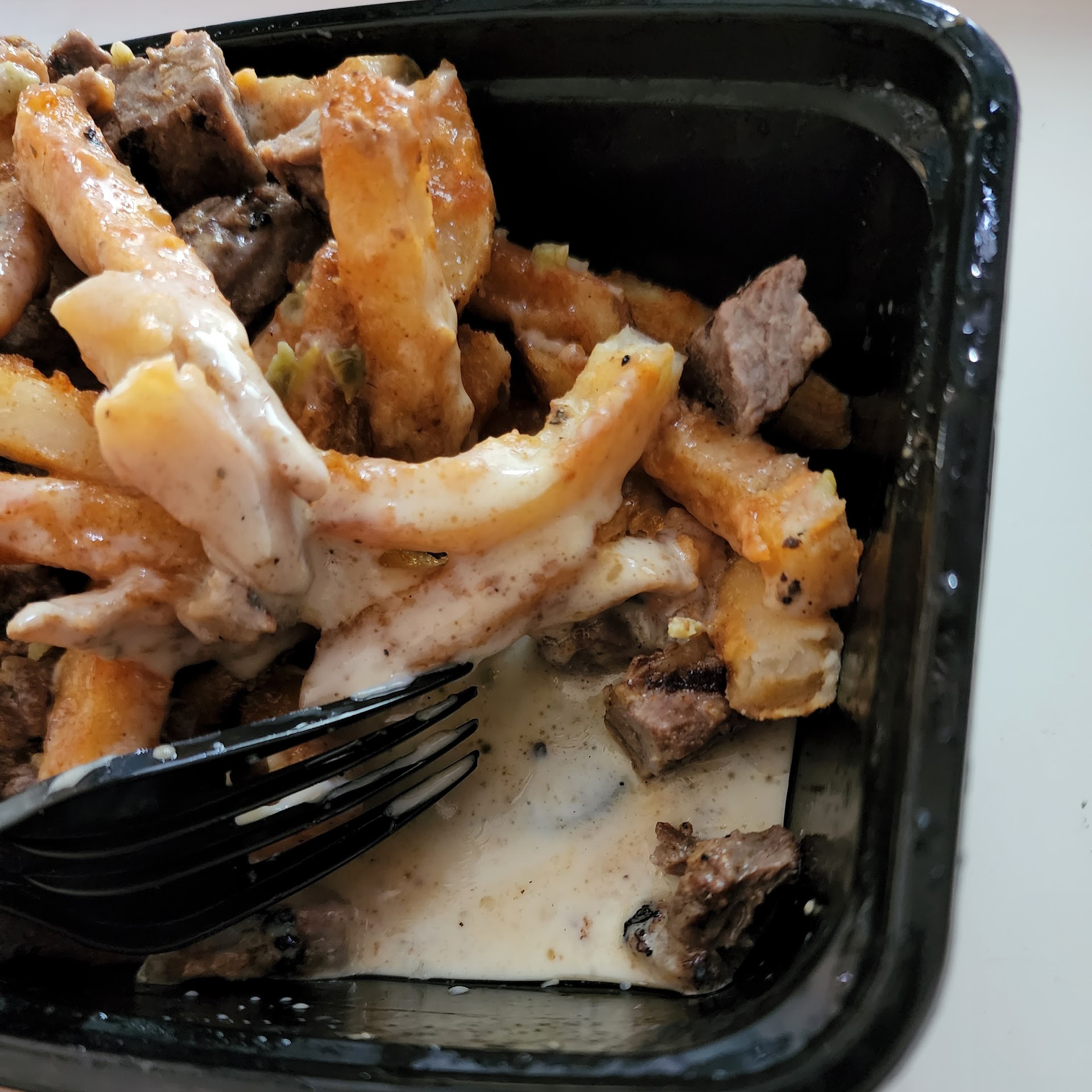 They start cooking our food, and as the woman cooking had food in one gloved hand, she’s touching a touch screen monitor with her other gloved hand, amongst other things that I feel shouldn’t be touched if you’re cooking food, let alone serving the public. After about another 25 minutes, our food was ready.