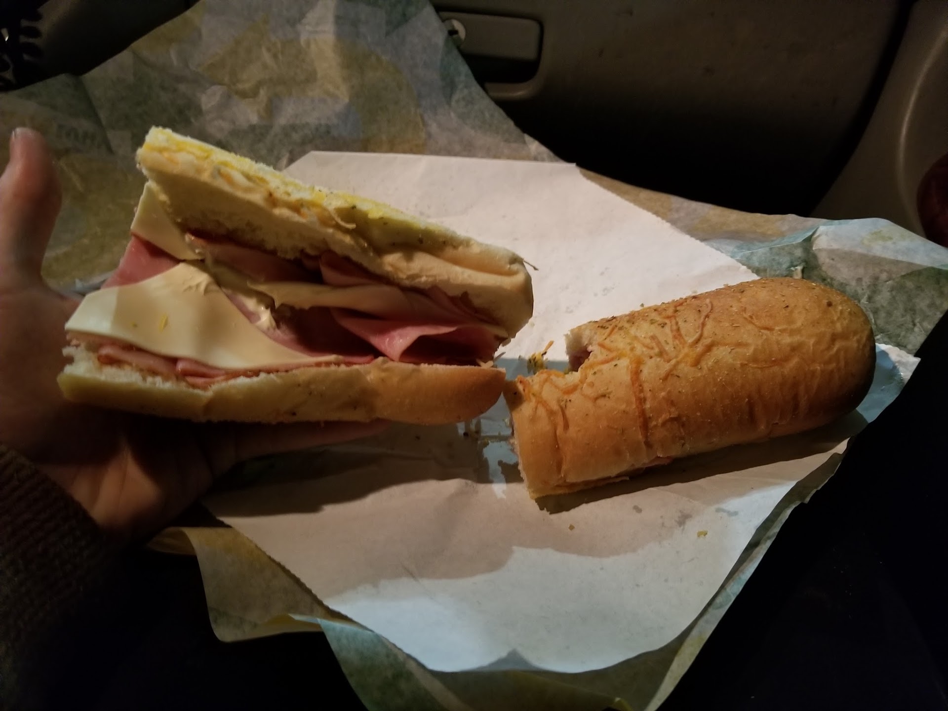Read moreThis girl was very unkempt. Her hair was very messily in a ponytail with hair sticking out everywhere, and her visor was just sort of sitting on the top of her head, it wasn’t even secure. Just very messy looking. ASIDE from that, she gave me a quite burnt Italian roll. I ordered a six inch with double meat, and she cut the 12” loaf in half, except one piece was about TWO INCHES longer than the other. She looked at it, it looked like she realized what she did, and actually gave me the SMALL piece. Like I get that subway doesn’t want employees throwing away miscut loaves of bread but why should I get the short end of the stick (literally)?? She also gave me a really nasty piece of American cheese that had tons of crumbs all over it from lord...