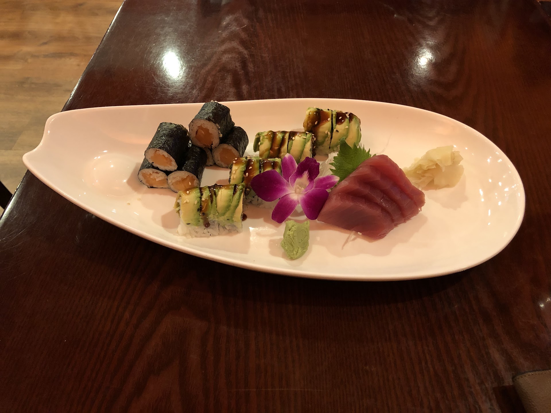 Read moreI usually love the sushi here but was really disappointed with how the cucumber still had skin on it. It wasn’t a thin skin, it was very thick and hard. In a hand roll with a lot of cucumber in it, this is especially obvious. This is not how they used to do it! I barely remember the soft avocado. Please peel the cucumber skin! I don’t like the pesticides, the antinutrients and especially dislike the plastic texture. It was hard in my throat and very unpleasant. It took away from the texture of the salmon and the avocado. It was also too finely julienned so that some pieces were all cucumber skin. Had the skin been peeled, this would not have happened. Also, with a hand roll, it’s important to have the fish run the length of the cone, not square chunks all at the top with the bottom being all rice. Difficult to eat. The cucumber skin was so bad I am not sure I will ever get it again. Sushi is too expensive for it to have this fairly large error. Really disappointed as this is our go to and this was just not their usual standard. Will not be going back quickly after this. Also disappointed with how the server dropped the food and ran away without asking if we needed anything else, I had to catch her to ask for what I needed. Didn’t care for all the masking, either. Wasn’t like that last time. Service with a smile is part of what I’m looking for when dining out. The cucumber...