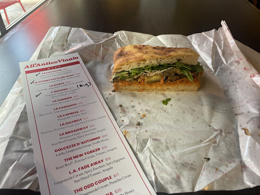 Read moreReally wanted to love this place, had heard great things about it and always saw a line out the door. When I went they weren't busy and I was able to order immediately. The staff was standoffish and not very welcoming. Even though there was an "order here" sign, we thought we were doing something wrong because no one greeted us, despite the fact that there were three workers behind the counter. We got two different sandwiches, the L.A. Fadeaway and the La Favolosa. The "spicy" toppings on the L.A. Fadeaway were flavorless (sorry, but true), and there was only a sprinkle of arugula. The Favolosa did taste better, but there was barely anything on it (pictured). It was just super disappointing paying $50 for two sandwiches that left us still hungry. I honestly would not recommend this place, extremely overhyped. Too expensive for...