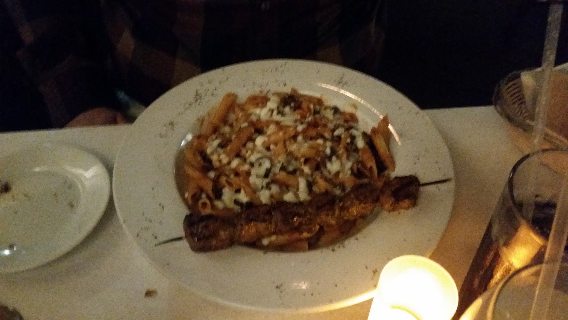 We ordered the hummus ( which was good ), spinach stuffed chicken, the lamb kabobs and finished with baklava - everything was just okay - not very flavorful - the baklava was decent. We ordered basic stuff to see if it was going to be good. If you can't make the basics why would I come back and try more elaborate dishes. . . but I guess that made us targets for ridicule. Each time we ordered you could hear the back end laughing about what we chose - it was literally each time our server left our table there would be an uproarious amount of laughter.