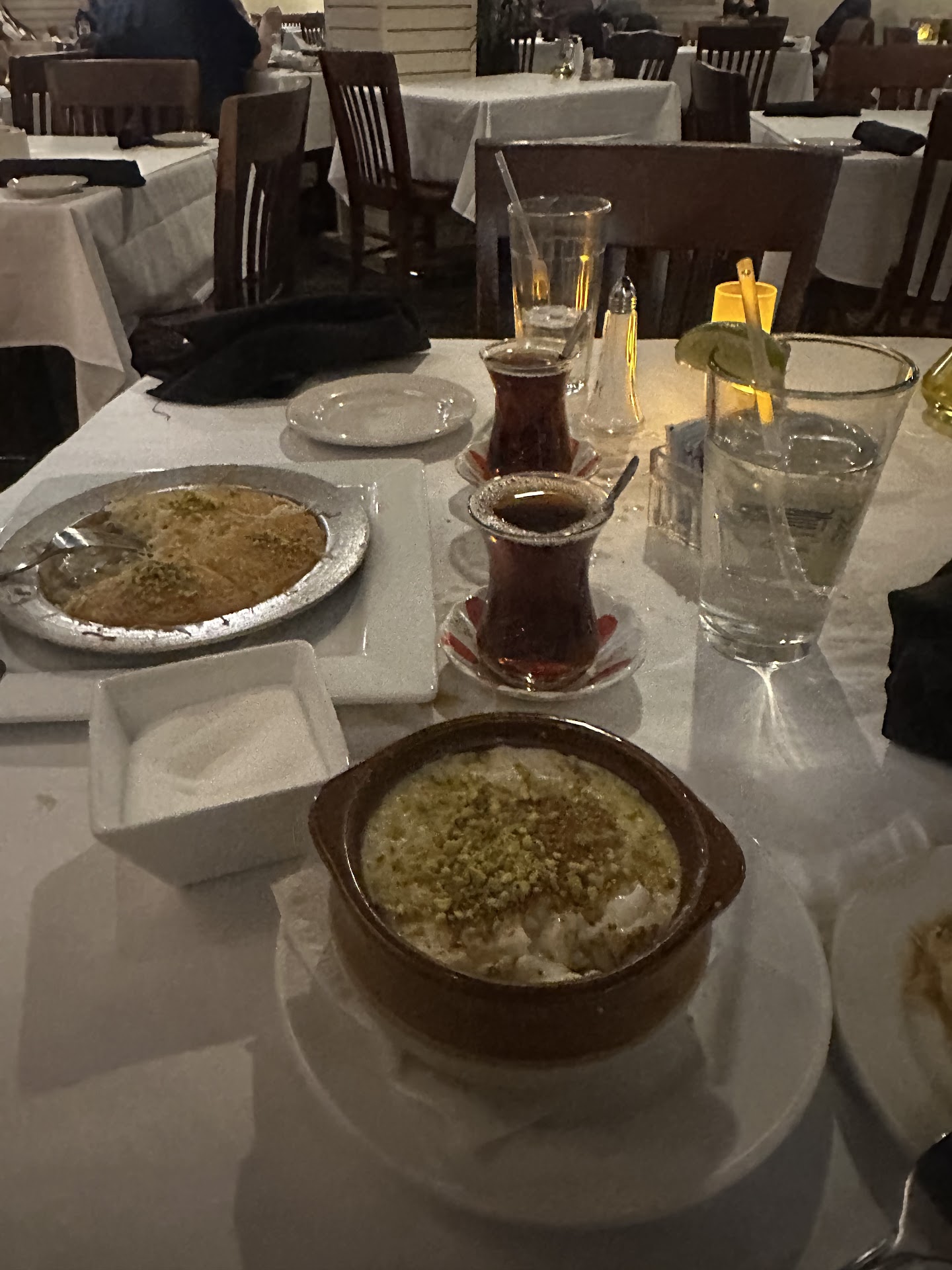 I worked at a wonderful Turkish restaurant for a while as a waitress. Me and one other employee were the only non-family members that worked there. I truly felt like family, and learned how to cook many foods! They made everything from scrap and fresh!! I make my own hummus, moussaka, etc. So yeah… I am very particular with Turkish food! I will say, this restaurant met any and all expectations. I ordered the appetizer platter and a garden salad. The appetizer platter included: stuffed grape leaves, fillo dough rolls, and hummus served with rose petal jam and pita bread. A perfect trio! They also brought out perhaps the best bread I've ever had with oil and seasonings to dip it it. The grape leaves have pine nuts in them. I have to admit, I wasn't a big fan of that.They have loads of seasoning in them, which made them very flavourful, more than any I've had. I'd give the grape leaves a 4 out of 5, mainly due to the pinenuts. (If you like your grape leaves warmed, tell them, they serve them slightly chilled.) But they were delicious none the less. The fillo dough rolls were amazing! I loved the feta they use to make them! The hummus was as good as my own. That says a lot, since I am very picky with hummus, to the point I do not prefer store bought hummus. I asked for ranch dressing for my salad, but the waiter encouraged me to use their dressing that is made there, fresh. He said they do not make their ranch, and emphasized it would not be as good as their dressing. I'm glad I took his advice! The vinegar and oil combo, and whatever else they put in it, was perfect! I love the pride they took in preparing the salad. The lettuce, cucumbers and tomatoes were sliced perfectly. NO huge chunks of lettuce to contend with, or large pieces of tomato that needed to be cut into pieces. (While I am NOT that picky, having waited tables for years, I know many are, and this matters to some! Just covering all bases for my review!) The diligence in their food preparation is commendable and thoughtful. I did not have the hot rose hip tea, but my companion did and loved it! It smelled amazing! The atmosphere is relaxing and perfect for a date or out with the family. The staff is very helpful, friendly and efficient. This restaurant will now become a tradition when my friend and I drive into downtown Nashville. FINAL THOUGHT: If you appreciate great, authentic Turkish food, and desire an intimate and delightful environment, with a great staff, this...